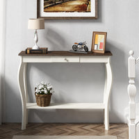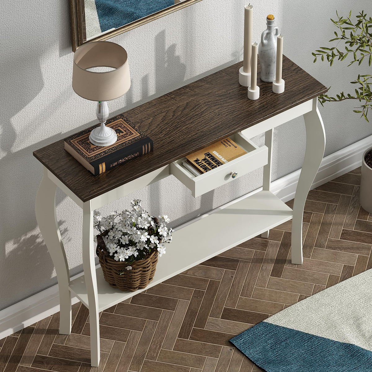 Choochoo Narrow Farmhouse Console Table With Drawer, Chic Accent Sofa Entryway Table With Shelves For Entryway, Living Room, Hallway, Antique White & Brown