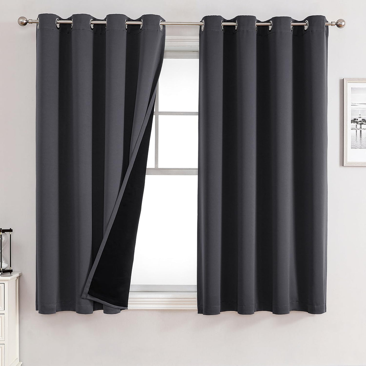 Chrisdowa 100% Blackout Curtains For Bedroom With Black Liner, 2 Thick Layers Total Blackout Thermal Insulated Grommet Small Win