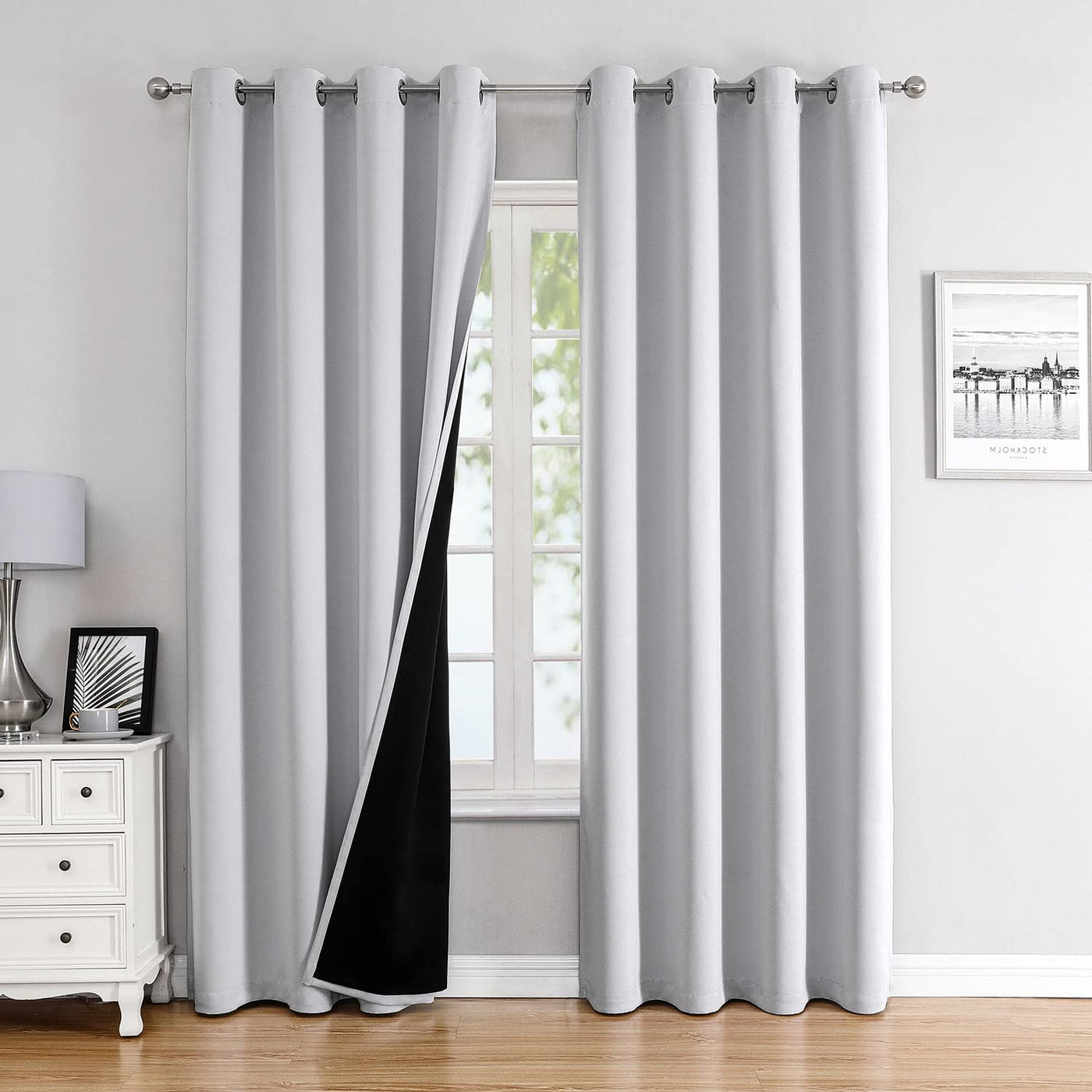 Chrisdowa 100% Blackout Curtains For Bedroom With Black Liner, 2 Thick Layers Total Blackout Thermal Insulated Grommet Window Cu