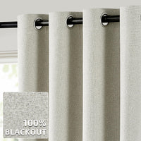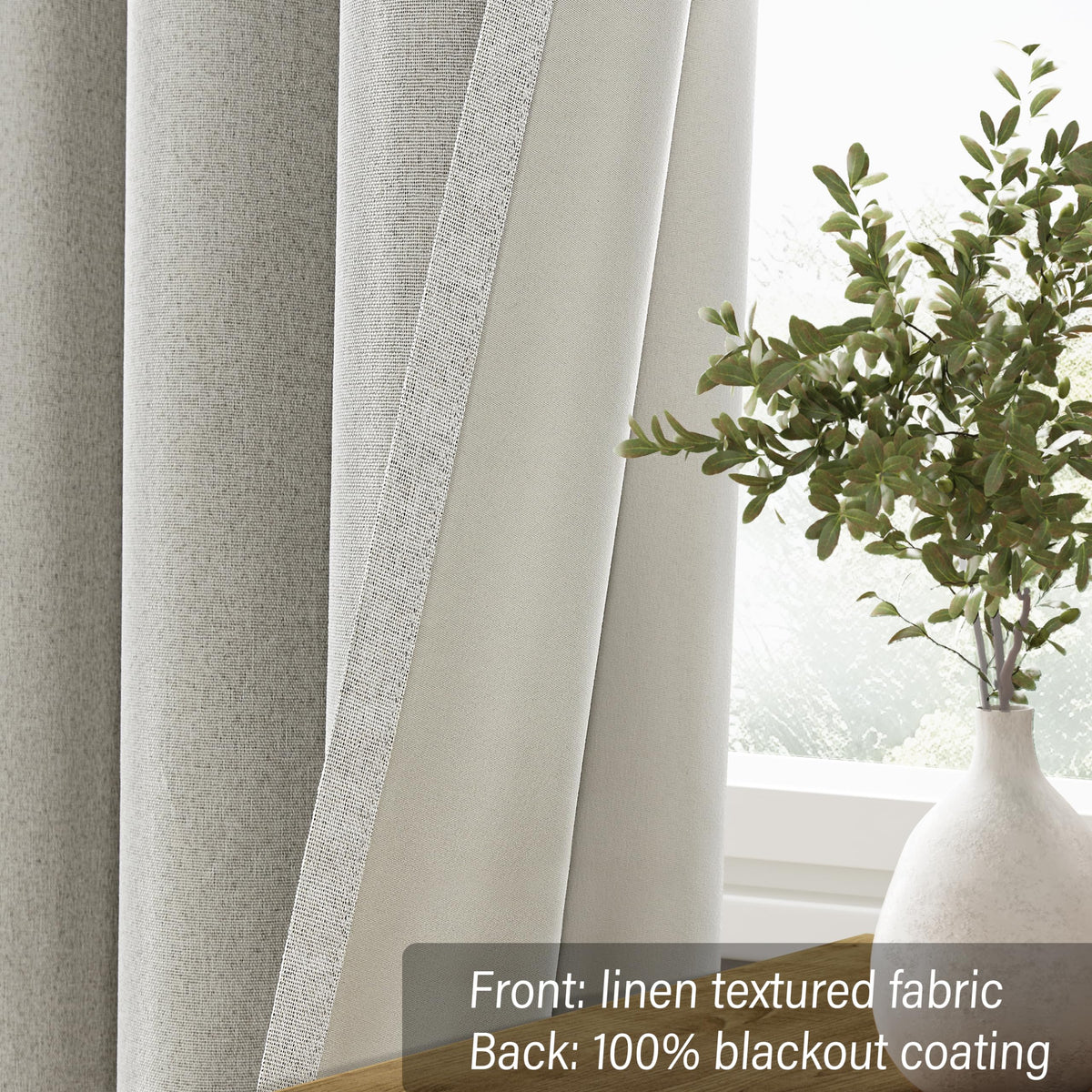 Chrisdowa 100% Blackout Linen Textured Curtains 84 Inches Long For Bedroom Warm Grey Beige Grommet Room Darkening Curtains & Dra