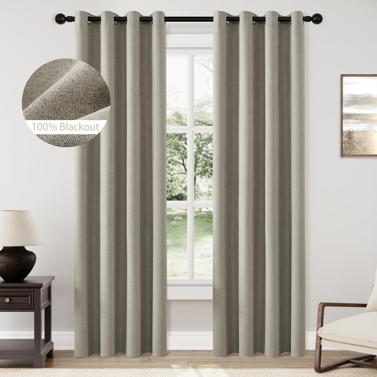 Chrisdowa Warm Taupe Linen Curtains 84 Inches Long For Living Room 100% Blackout Neutral Curtain Drapes Thermal Grommet Curtain