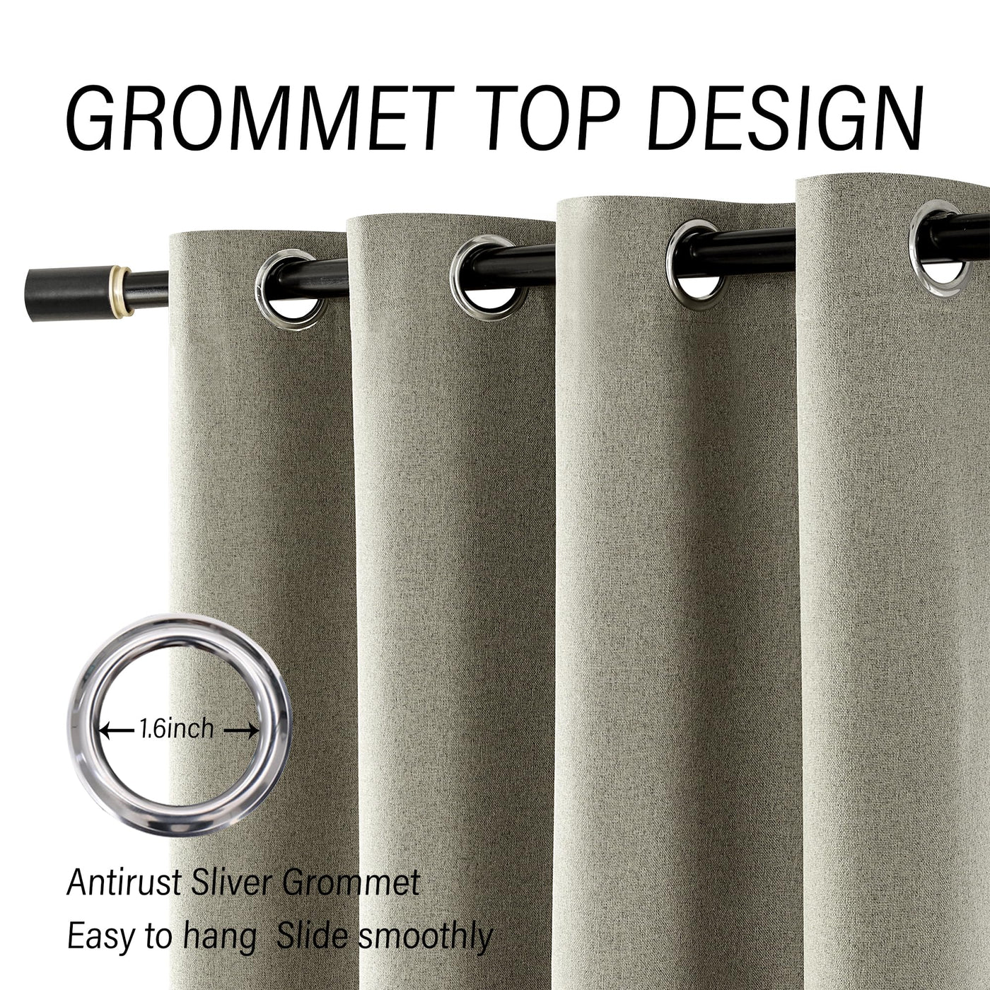 Q: What style of decor do these curtains match?A: The linen look of these curtains offers a smooth touch and elegant appearance, making them suitable for various decor styles including farmhouse, modern, and traditional designs.