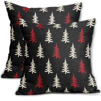 Christmas Pillow Covers 18X18 Set Of 2 Black Red Cream Xmas Tree Rustic Style Winter Print Decorative Outdoor Pillowcases Farmho
