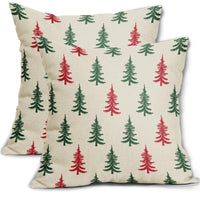 Christmas Tree Pillow Covers 18X18 Set Of 2 Green Red Xmas Rustic Style Winter Print Decorative Outdoor Pillowcases Farmhouse Vi