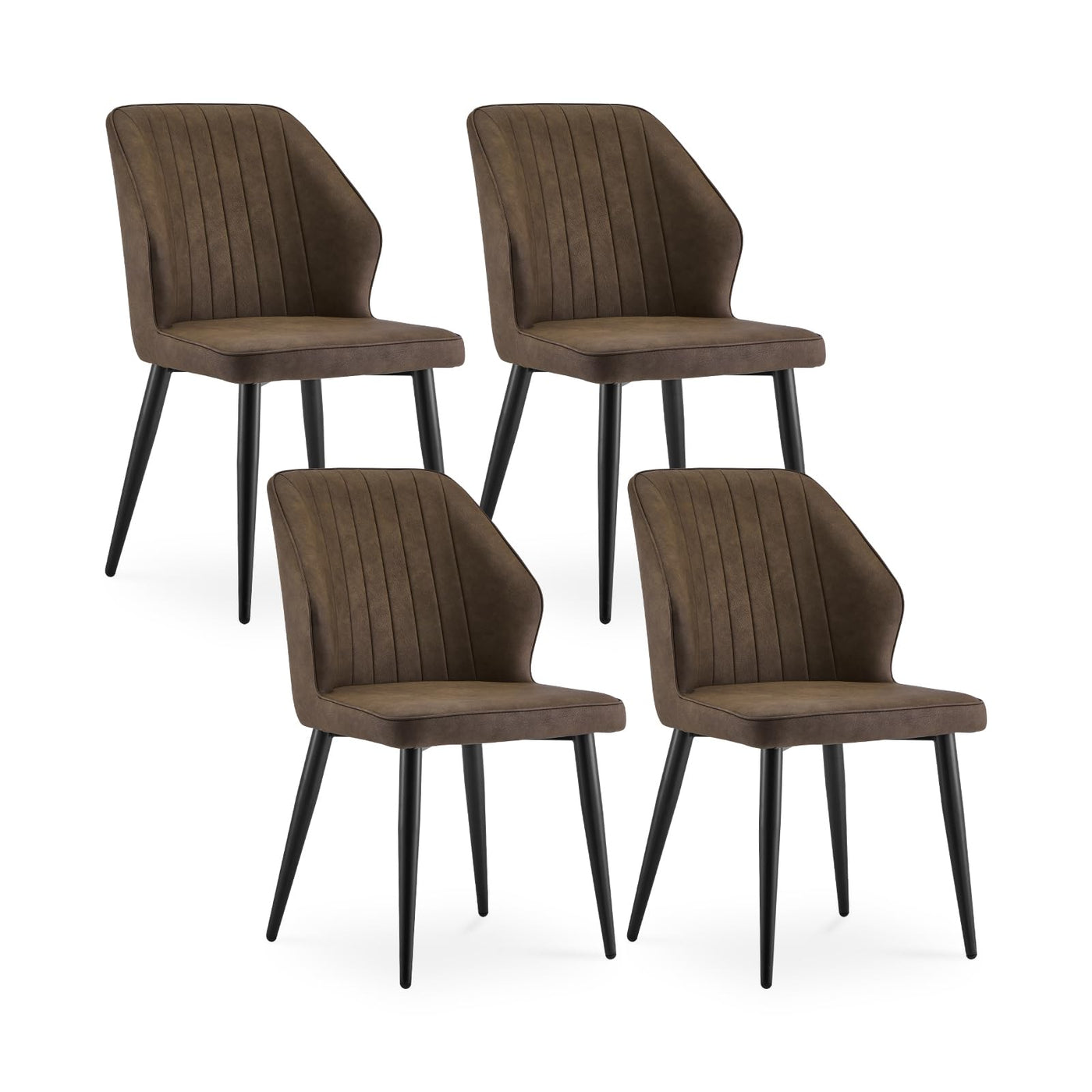 Clipop Faux Leather Dining Chairs Set Of 4, Mid Century Modern Kitchen Chair, Upholstered Seat Leisure Side Chair With Backrests, Metal Legs For Living Room, Lounge, Guest Room, Brown