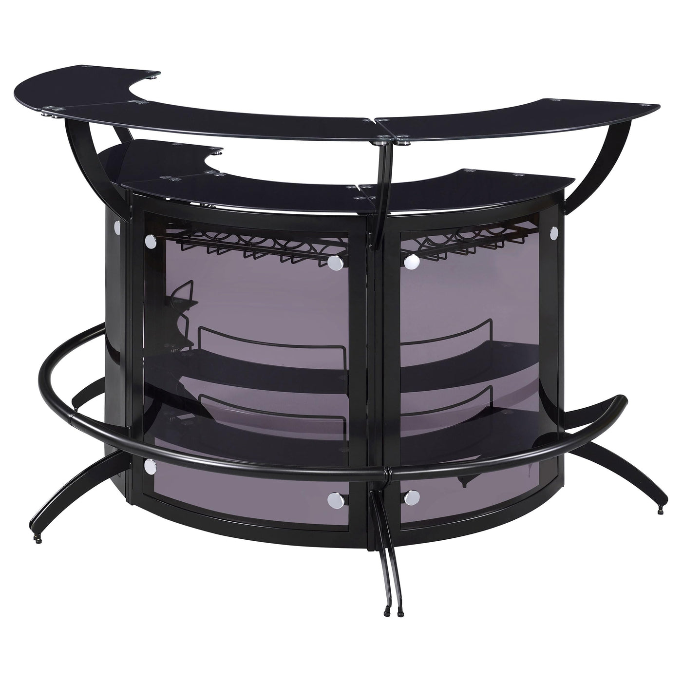 Coaster Home Furnishings Dallas 2-Shelf Curved Home Bar Smoke and Black Glass (Set of 3)