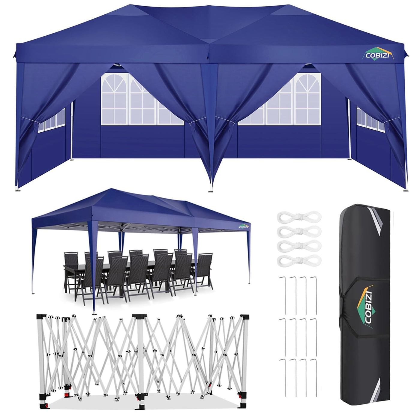 Cobizi 10X20 Pop Up Canopy Tent With 6 Sidewalls, Waterproof Portable Outdoor Canopy 10X20 Ez Up Instant Shelter Tent For Partie