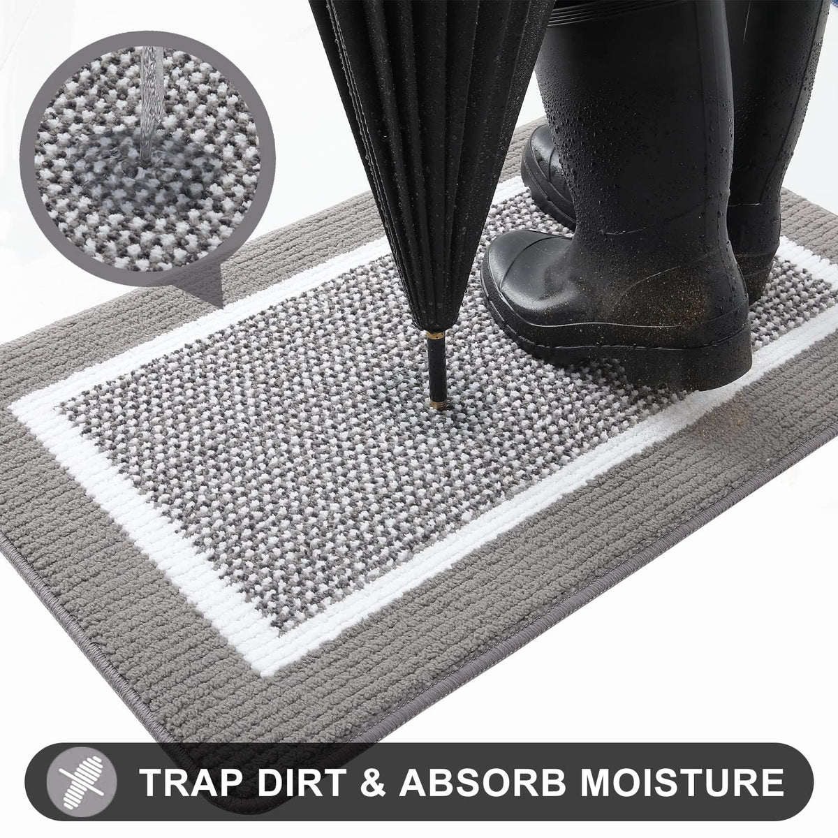 Colorxy Indoor Door Mat, Non-Slip Absorbent Resist Dirt Entrance Mat, Sturdy Low-Profile Inside Floor Carpet Mats, Washable Front Entry Doormats For Entryway, 71''X47'', Grey