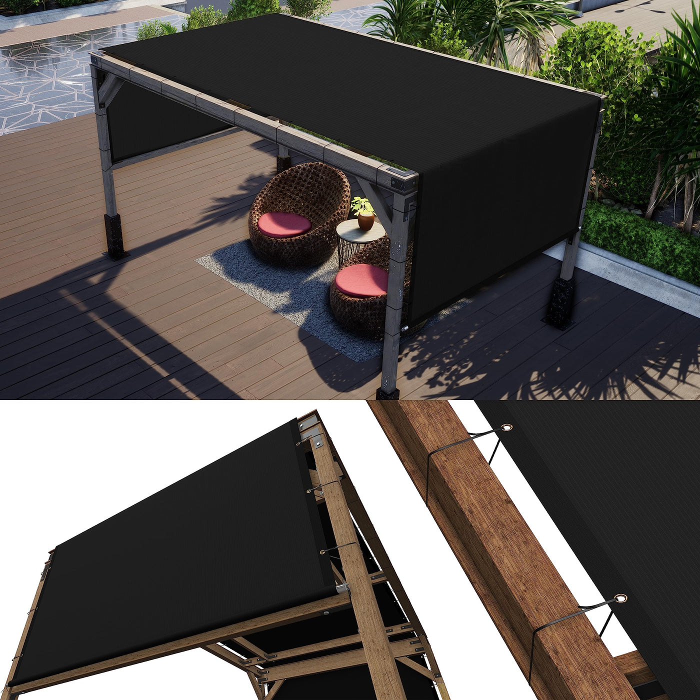 Colourtree 8' W X 16' L Black Pergola Sun Shade Canopy Replacement Cover Upf50, Commercial Grade 260 Gsm Cloth For Outdoor Patio