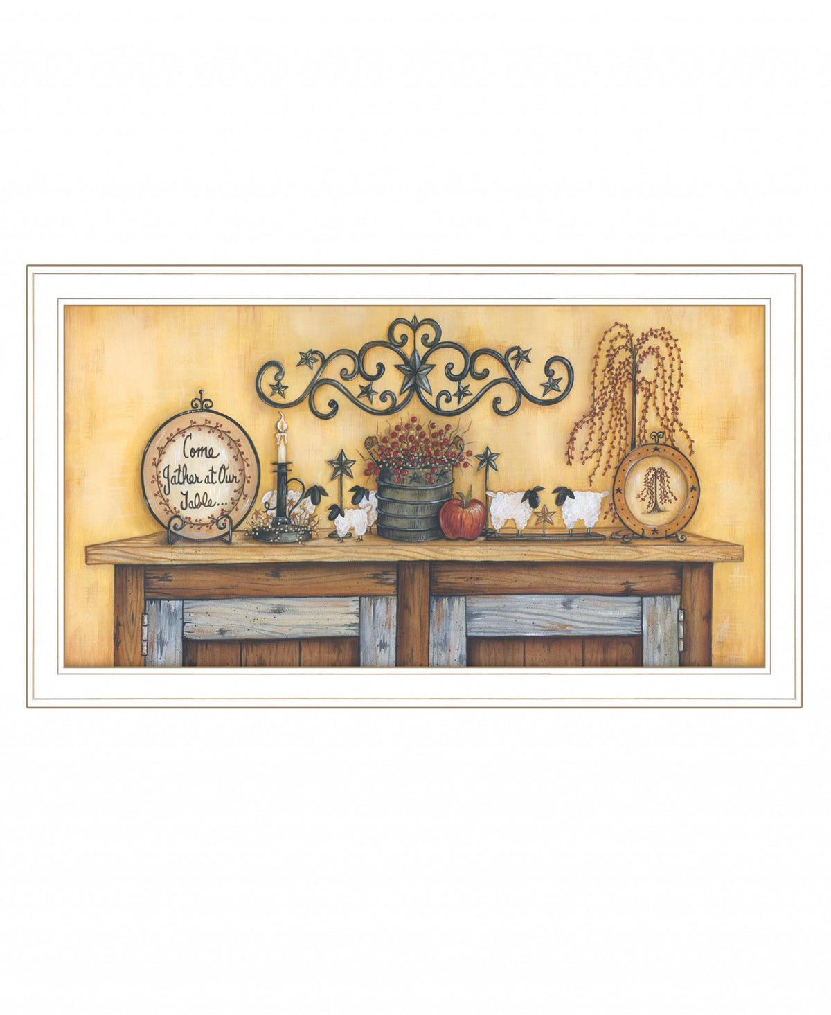 Unique and decorative, this come gather at our table 3 white framed print wall art will leave a lasting impression. This print is a visual artistic expression that allows you to decorate your space in style. Reproduced for you on wood, this hanging accent will be a trendy walls and fashionable way to dress your in a rustic and modern farmhouse vibe. Hang on your wall to add some up to date fashion and decoration. Utilize this opportunity to create a point in the room with this Great wall decor option. 19' H x 37' W x 1' D