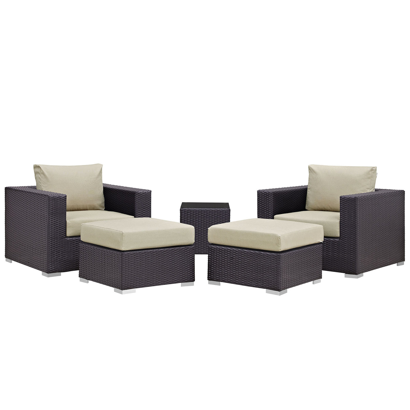 Convene 5 Piece Outdoor Patio Sectional Set - Espresso Beige