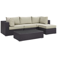 Convene Outdoor Sectional Set - Durable Rattan Weave, Weather-Resistant Cushions, 5 Piece Patio Sofa Set with Ottoman & Coffee T
