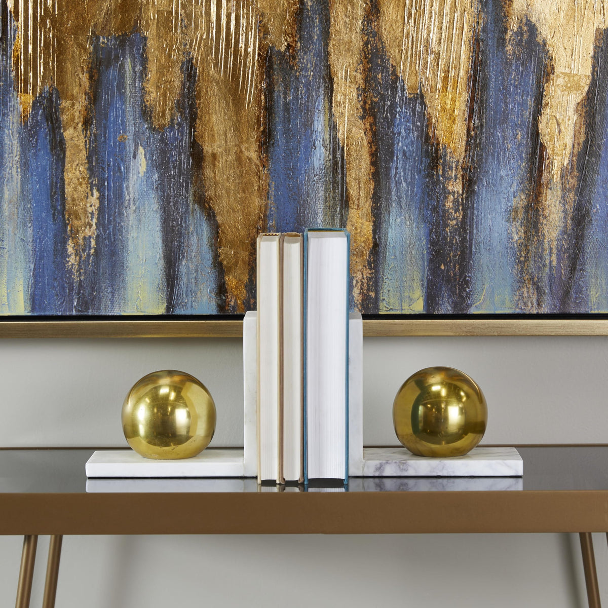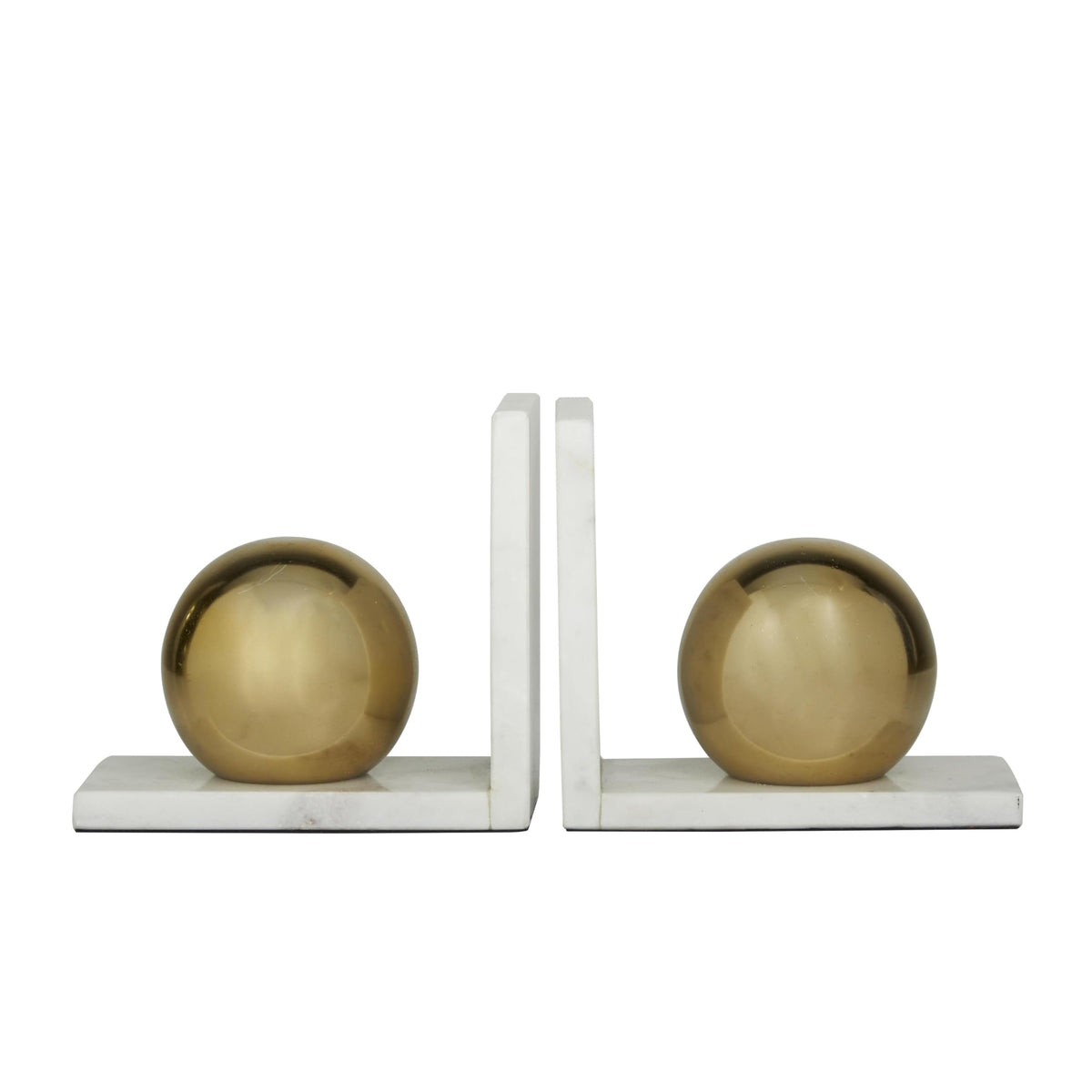 Cosmoliving By Cosmopolitan Marble Decorative Bookends Orb 7 Lbs Non Skid Bookends, Set Of 2 Office Bookends6''W, 7''H, Gold