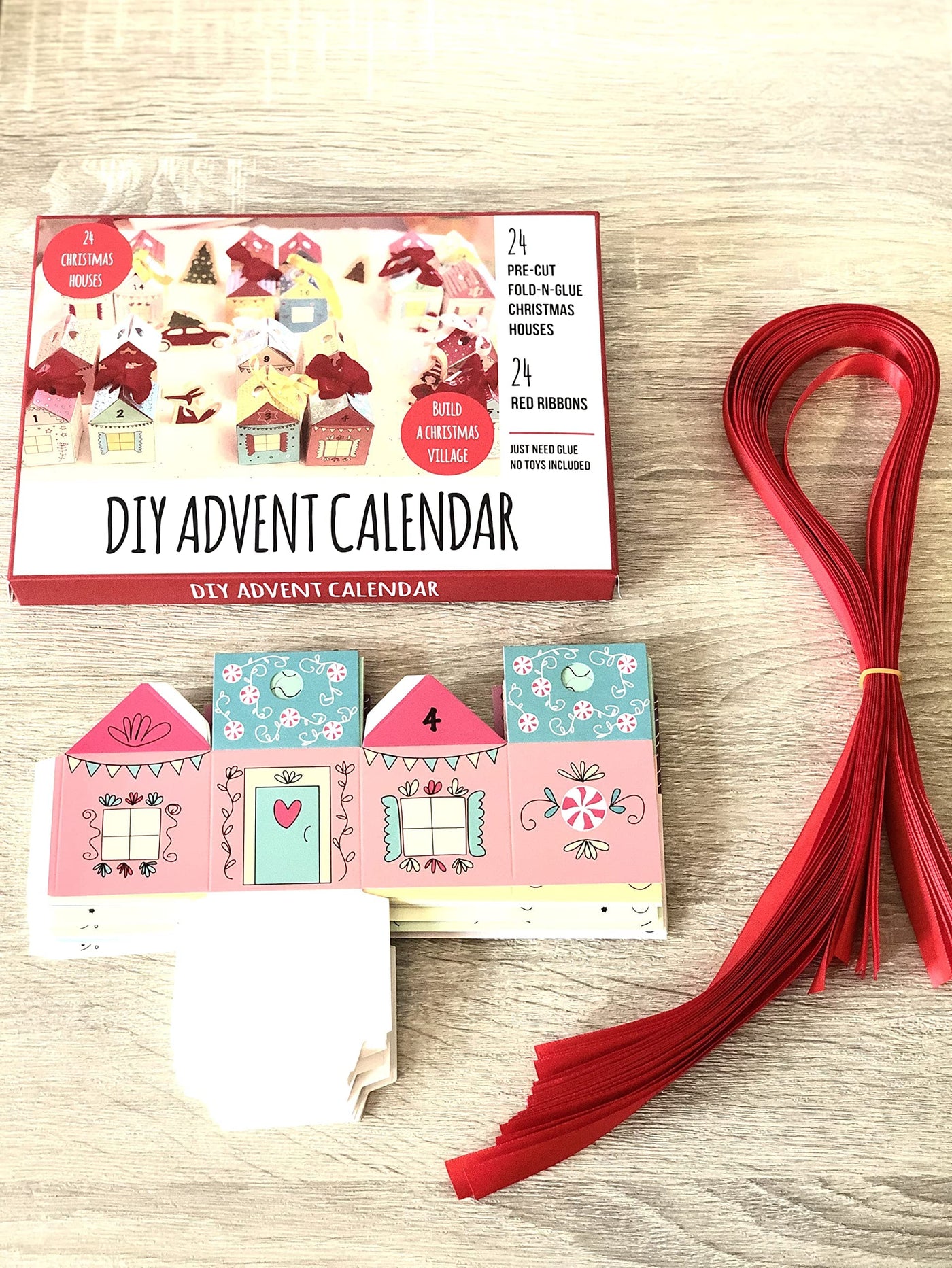 This Diy Advent Calendar Kit Includes 24 Printed Fold-N-Glue Houses, 24 Red Ribbons And Instructions You Just Need A Glue To Build These Houses Diy Advent Calendar Kit Is A Great Way To Prepare For Christmas Together With Your Child. It'S Designed As A Creative Activity Where You Can Fold And Glue Christmas Houses Together. Fill Each House With A Piece Of Paper Describing An Advent Activity Andor A Small Toy. Build A Christmas Village And Decorate It With Toys. Or Hang The Christmas Houses On A Tree. Created By A Mom For Her Child The Size Of Each Box Is 2 Inches X2.