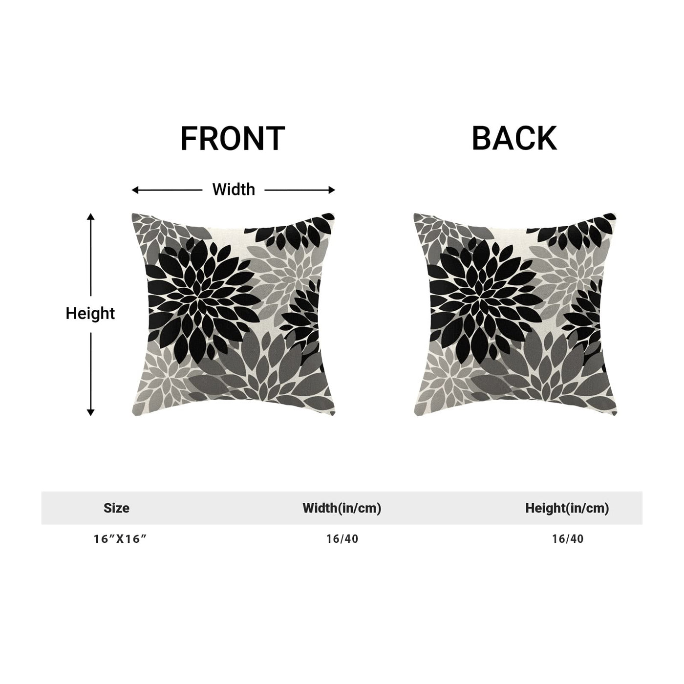 Cxmeifly Black Grey Gray Pillow Covers 16X16 Inch Set Of 2 Dahlia Floral Decor Throw Pillows Summer Modern Geometry Flower Outdo