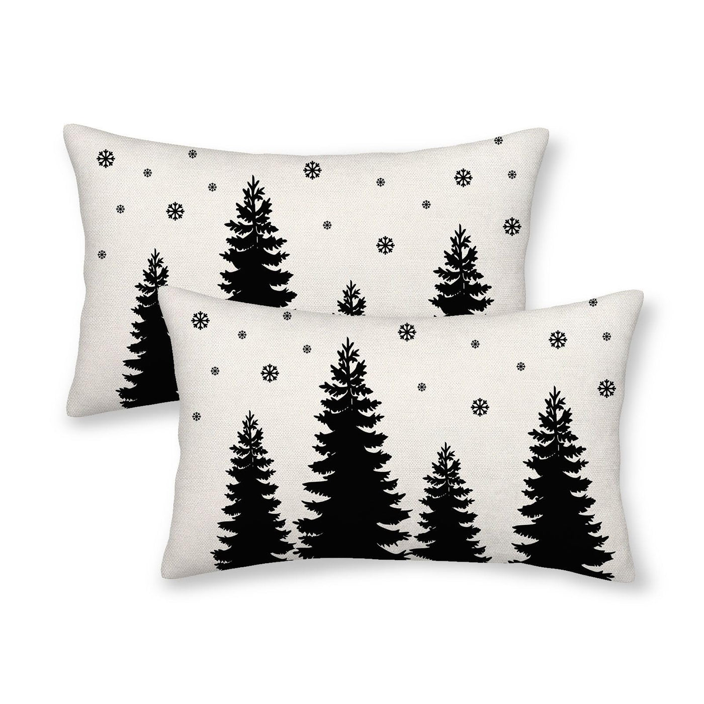 Cxmeifly Christmas Pillow Covers 12X20 Inch Set Of 2 Cream Black Christmas Tree Snowflakes Decor Throw Pillows Winter Xmas Holid