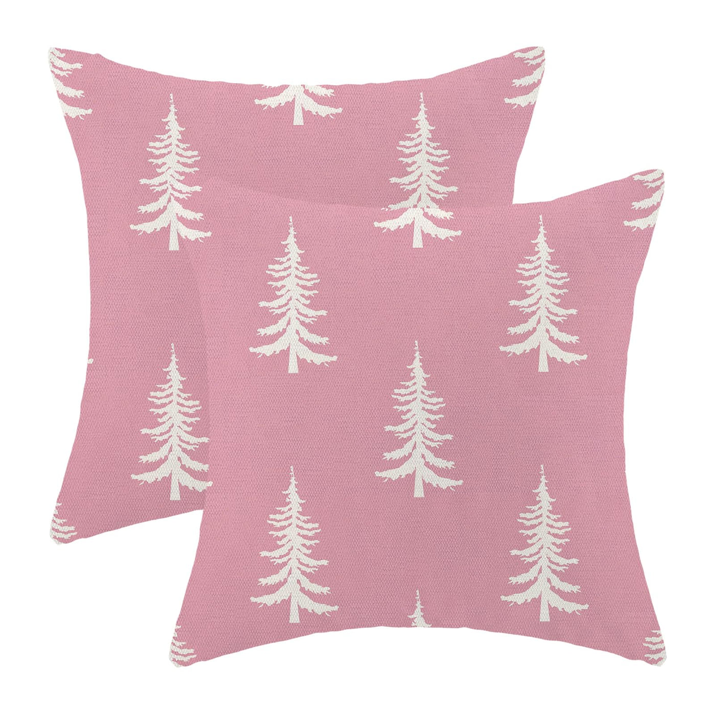 Cxmeifly Christmas Pillow Covers 20X20 Inch Set Of 2 Pink Cream Christmas Tree Decor Throw Pillows Winter Xmas Holiday Outdoor C
