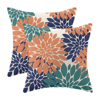 Cxmeifly Coral Teal Navy Blue Pillow Covers 16X16 Inch Set Of 2 Dahlia Floral Decor Throw Pillows Summer Modern Geometry Flower