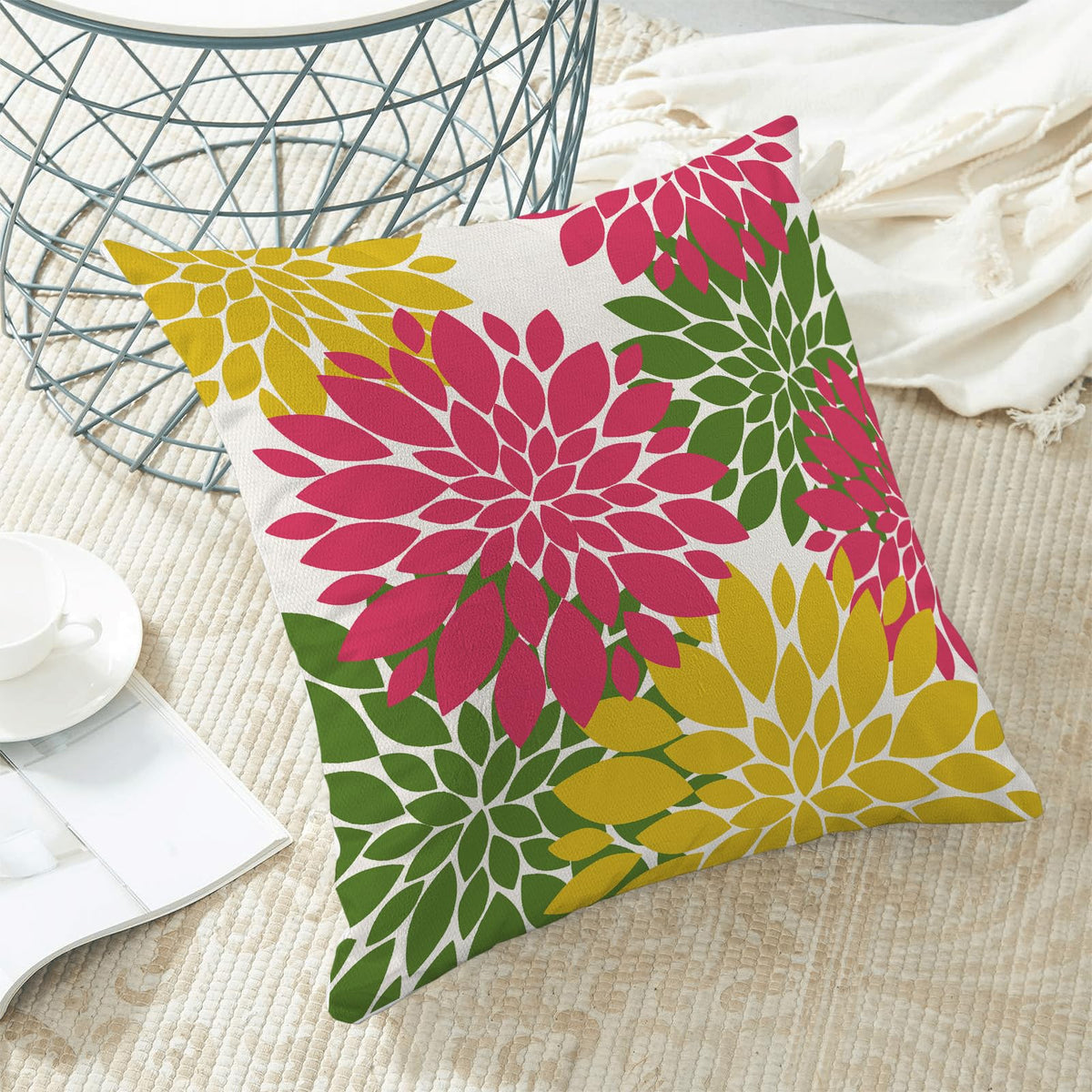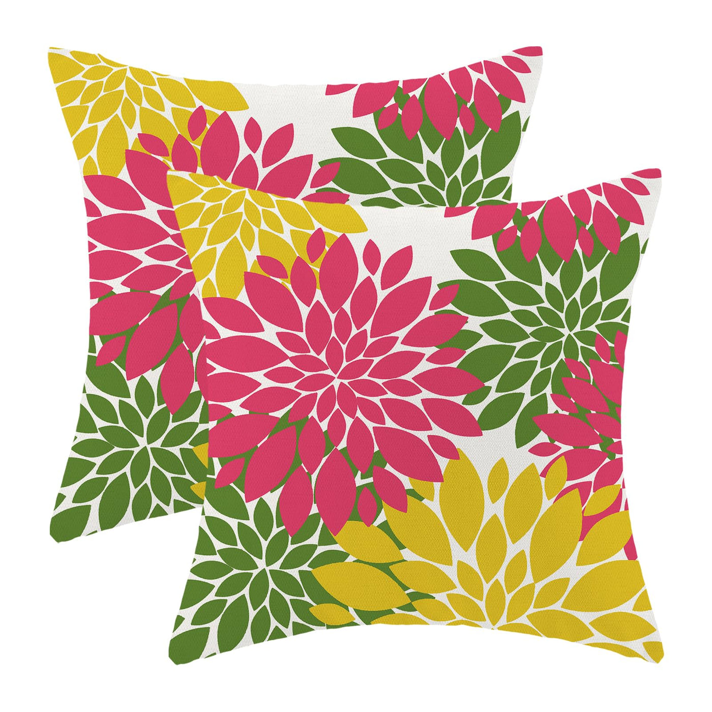 Cxmeifly Hot Pink Summer Outdoor Pillow Covers 18X18 Inch Set Of 2 Yellow Green Dahlia Floral Decor Throw Pillows Modern Geometr
