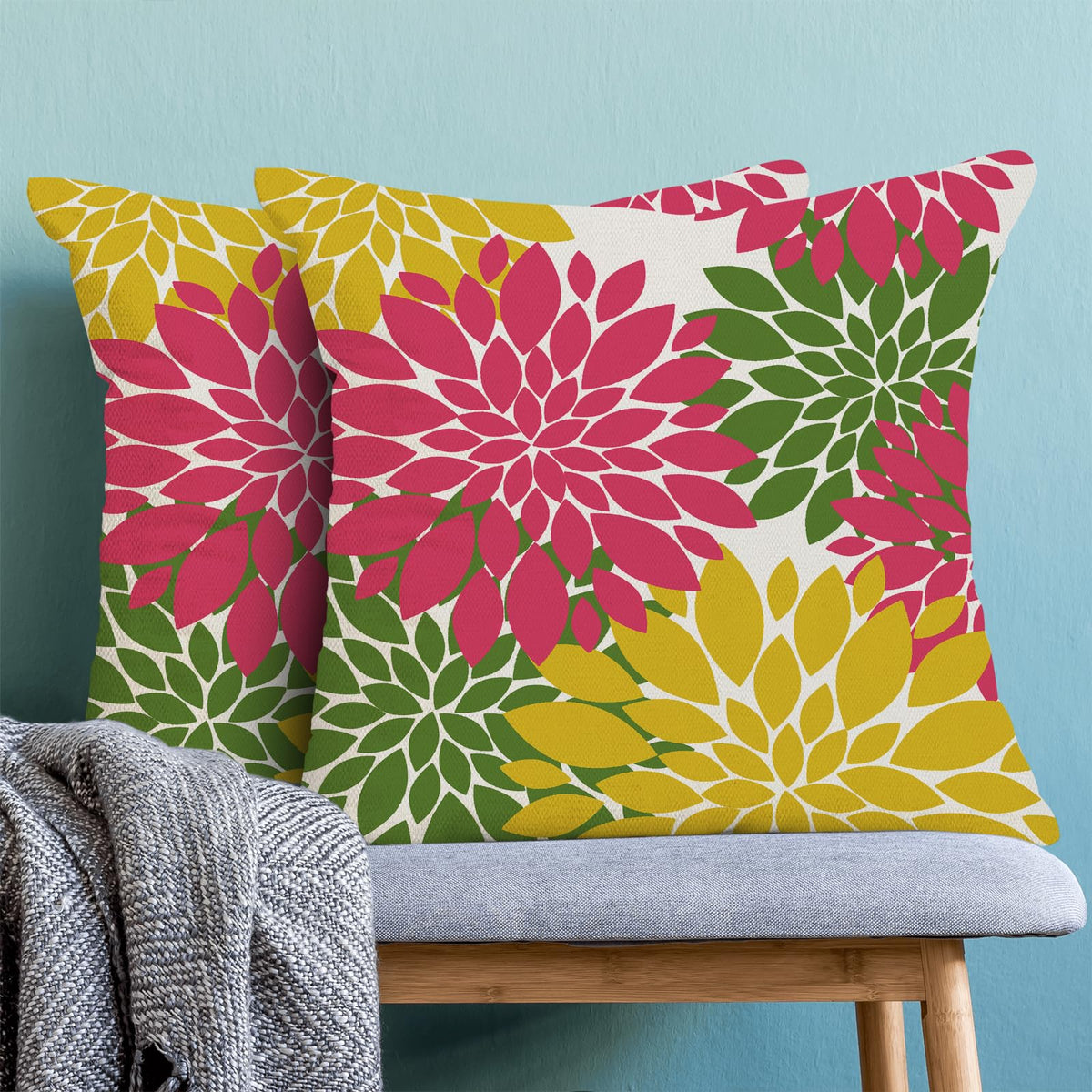 Cxmeifly Is A Comprehensive Home Textile Company That Integrates Design, Production, And Sales. We Always Insist On Creating Our Products With High-Quality Materials And Craftsmanship, Which Provides You With A Variety Of Styles, Colors, High-Quality Products To Meet Your Diverse Needs. Product Details: The Hot Pink Yellow Green Flowers Pillow Cover Is Made Of High Quality Polyester Linen Material And Is Very Sturdy And Soft. This Modern Geometry Pillow Cover Has An Invisible Zipper Which Improves The Appearance And Provides Easy Insertion And Removal. We Designed The Hot Pink Colored Dahlia Flower Pillow Cover To Look And Function Better Than Any Other'S! Thanks To High Temperature Cutting Technology, Our Dahlia Floral Pattern Decor Pillow Covers Are Softer Than The Usual Ones, No Bleeding, Fading Or Fraying Issue. We Have Strong Hidden Zipper, Dont' Worry About Tearing. Made With Shrink Resistant Fabric. Stays The Same And As New, After Every Wash. Machine Wash Cold Separately, Gently Cycle Only, No Bleach, Tumble Dry Low, Do Not Iron. Pillow Cover Only, No Insert Or Filler