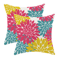 Cxmeifly Hot Pink Summer Outdoor Pillow Covers 18X18 Inch Set Of 2 Yellow Teal Dahlia Floral Decor Throw Pillows Modern Geometry