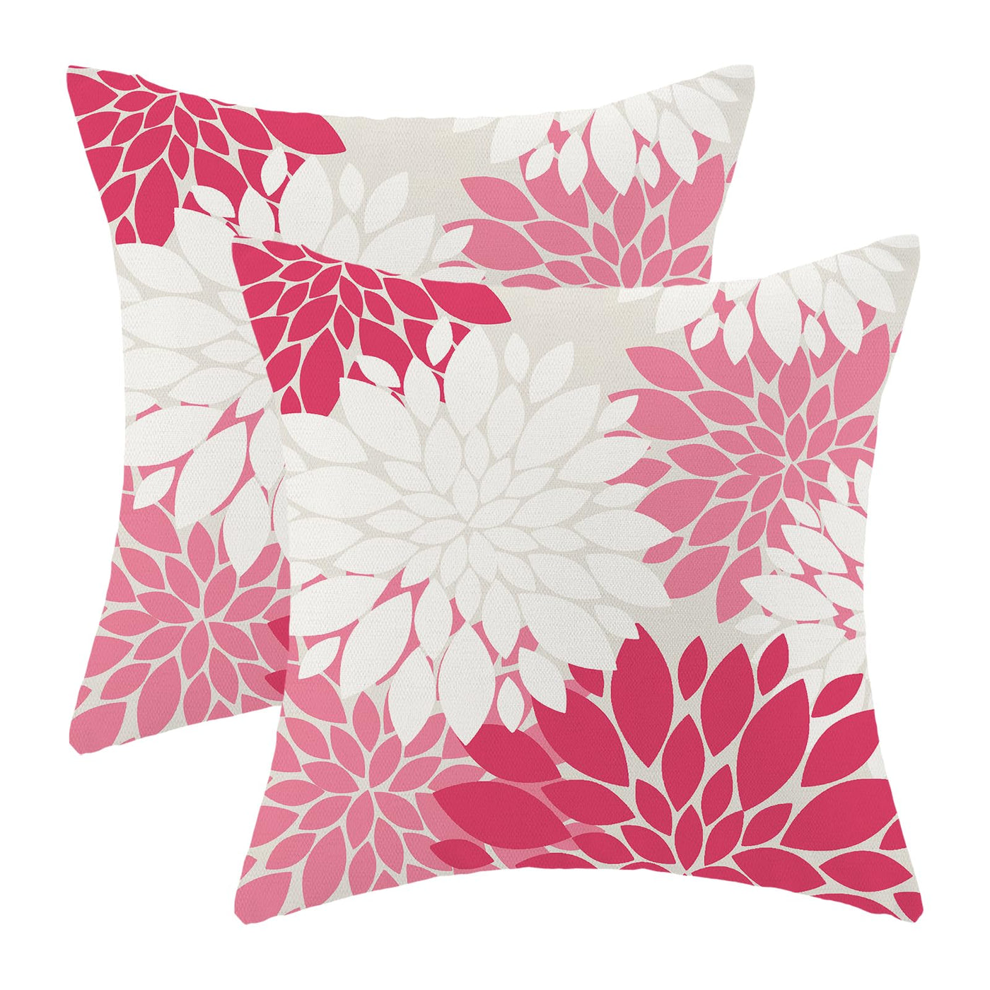 Cxmeifly Hot Pink White Summer Outdoor Pillow Covers 18X18 Inch Set Of 2 Blush Pink Dahlia Floral Decor Throw Pillows Modern Geo