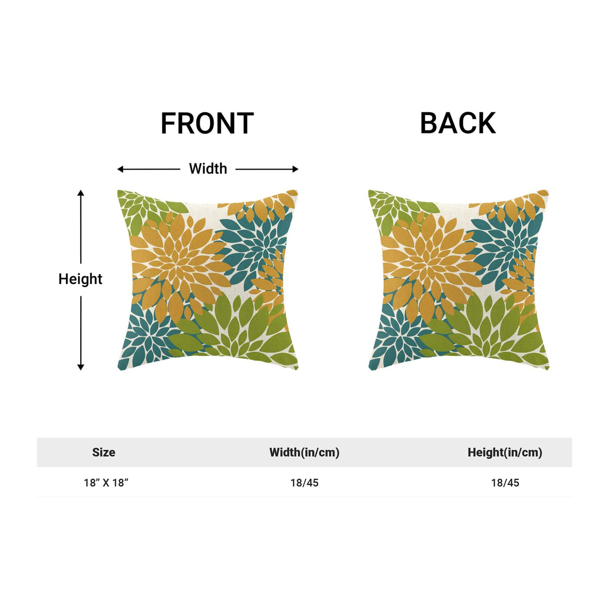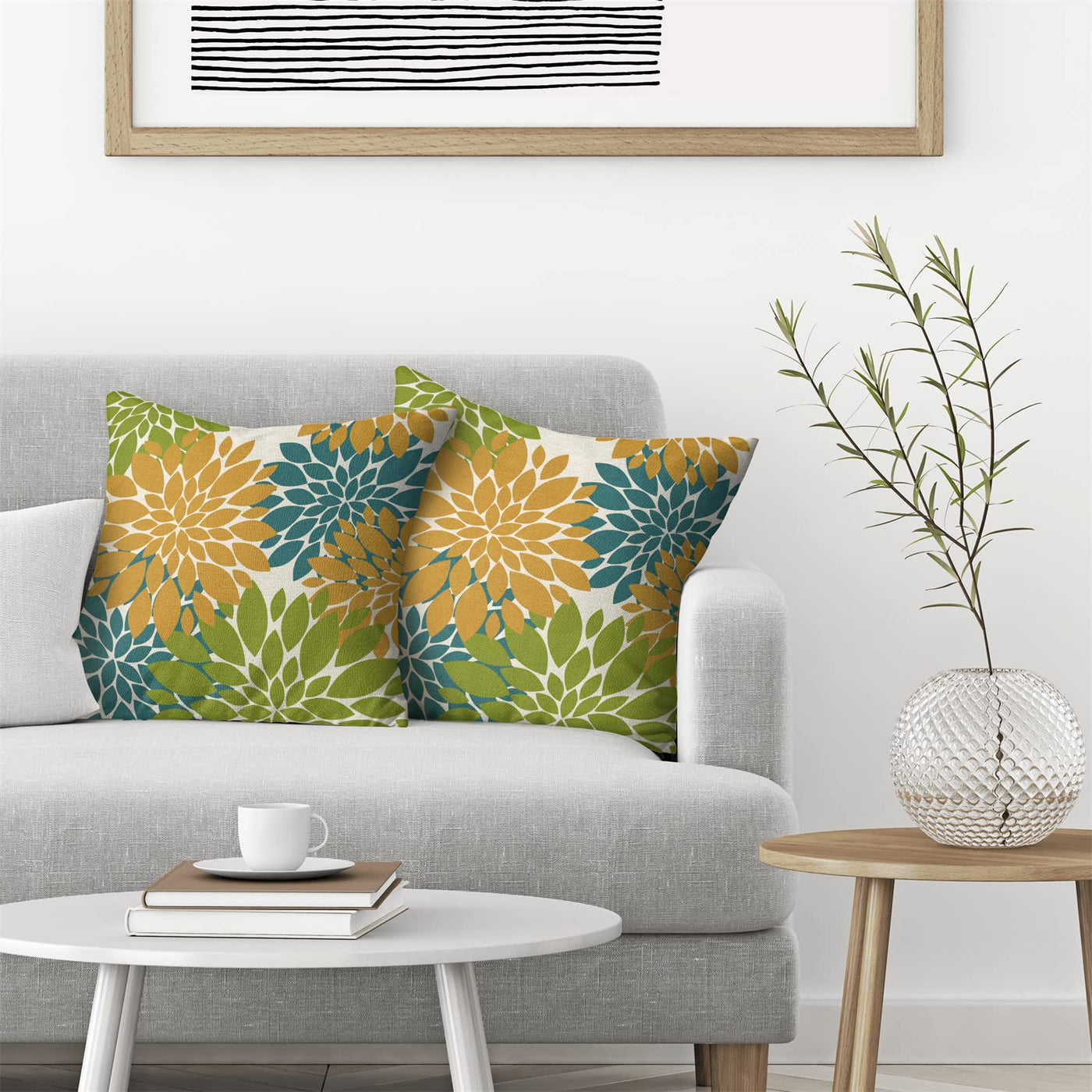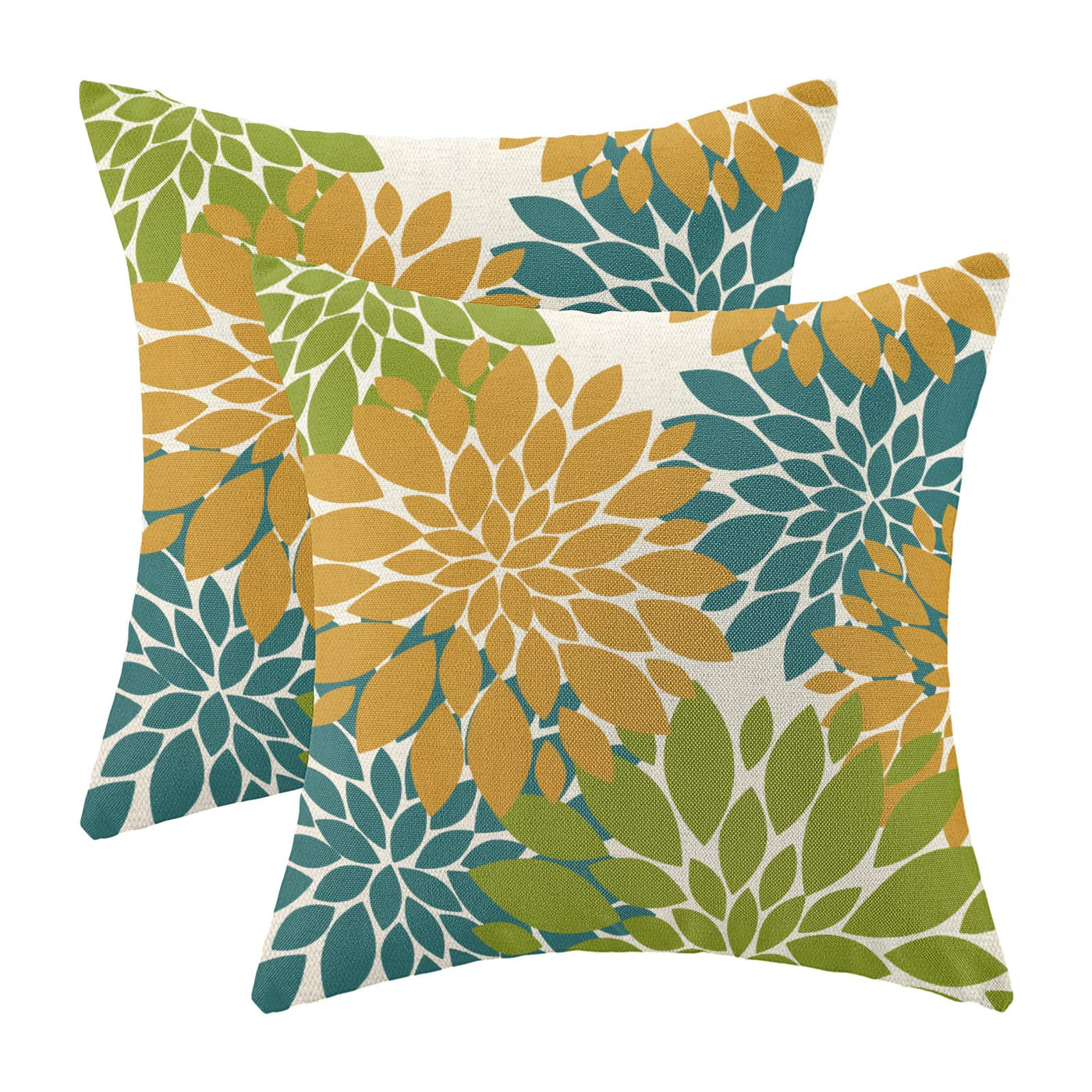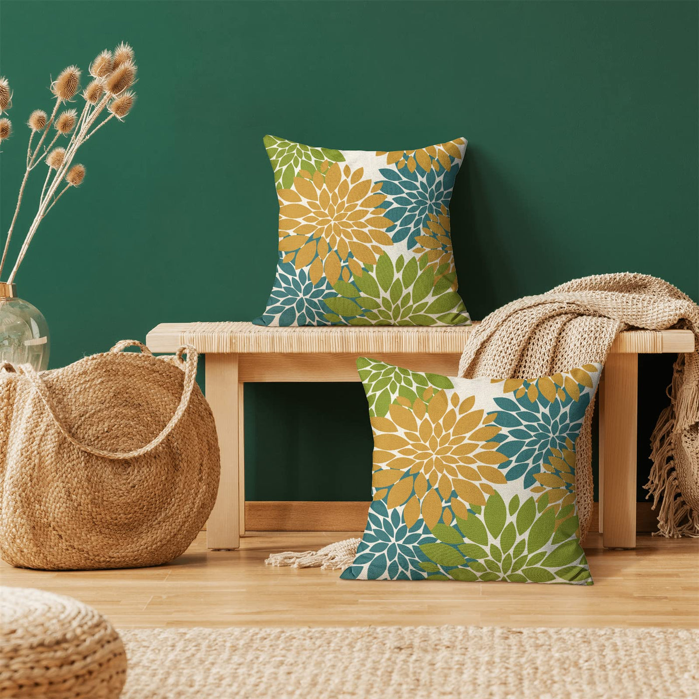 Cxmeifly Mustard Yellow Green Teal Pillow Covers 18X18 Inch Set Of 2 Dahlia Floral Decor Throw Pillows Summer Modern Geometry Fl