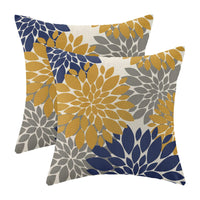 Cxmeifly Mustard Yellow Navy Blue Pillow Covers 16X16 Inch Set Of 2 Dahlia Floral Decor Throw Pillows Summer Modern Geometry Flo