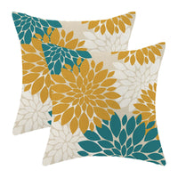 Cxmeifly Mustard Yellow Teal Pillow Covers 18X18 Inch Set Of 2 White Dahlia Floral Decor Throw Pillows Summer Modern Geometry Fl
