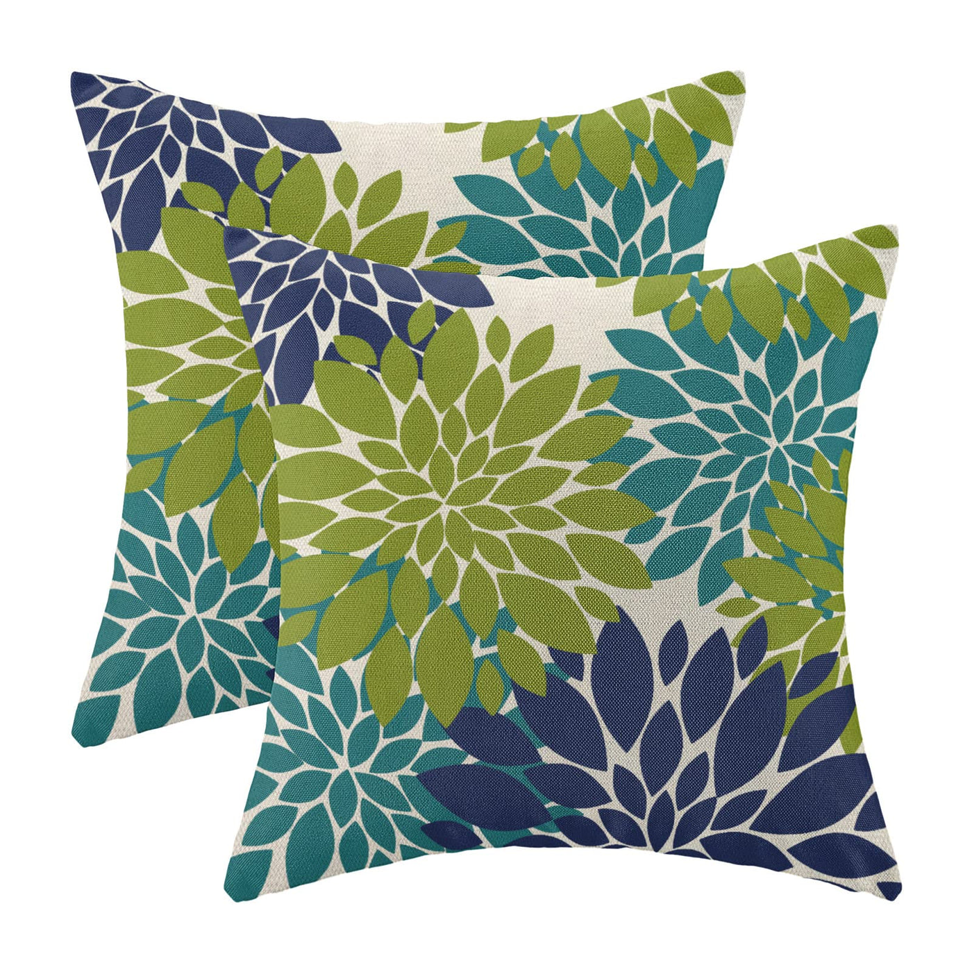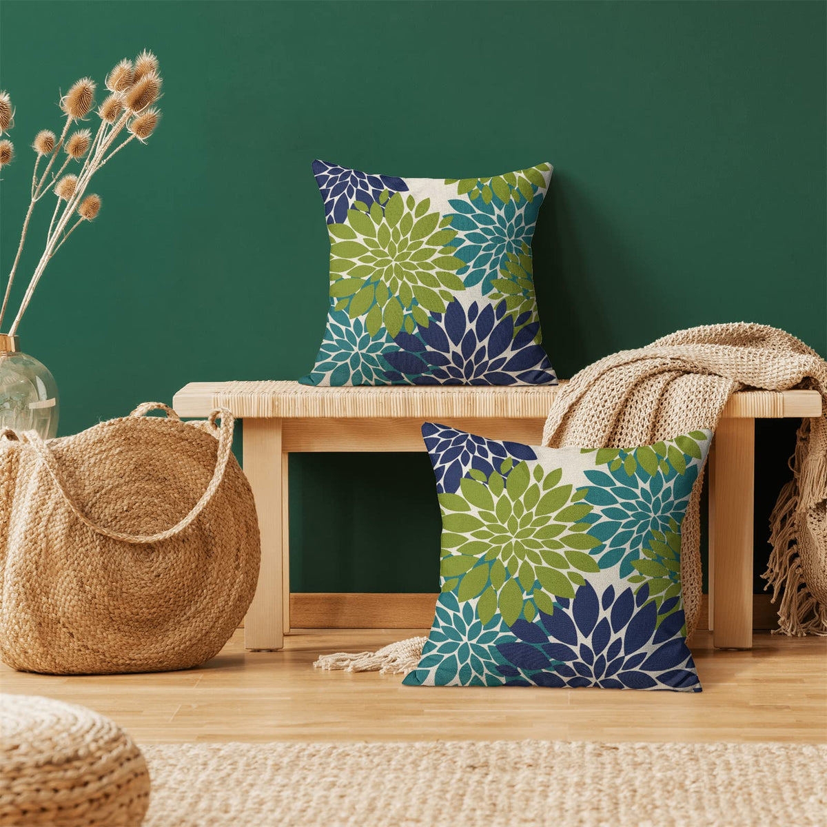 Cxmeifly Navy Blue Sage Green Teal Pillow Covers 16X16 Inch Set Of 2 Dahlia Floral Decor Throw Pillows Summer Modern Geometry Fl