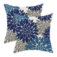 Cxmeifly Navy Blue Summer Outdoor Pillow Covers 18X18 Inch Set Of 2 Dusty Blue Grey Dahlia Floral Decor Throw Pillows Modern Geo