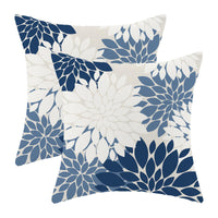 Cxmeifly Navy Blue White Summer Outdoor Pillow Covers 18X18 Inch Set Of 2 Dusty Blue Dahlia Floral Decor Throw Pillows Modern Ge