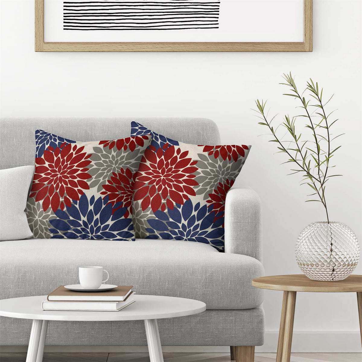 Cxmeifly Red Navy Blue Pillow Covers 20X20 Inch Set Of 2 4Th Of July Dahlia Floral Decor Throw Pillows Summer Modern Geometry Fl