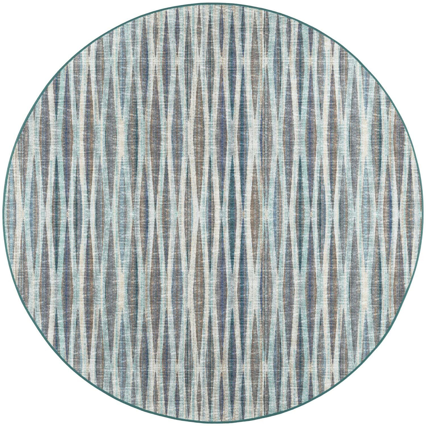 Amador collection is the ultimate transitional rug collection. Crafted in the USA using foreign & domestic materials and US labor. Casual dynamic stripes using state-of-the-art prismatic color processing technology. This allows for thousands of color combinations and shading in each design. These area rugs are UV stabilized, fade resistant and stain resistant for long lasting color and durability. Extremely heavy, dense pile with soft feel and cushion with non-skid rubber backing incorporated. This rug collection is perfect for all family members and pet owners. Vacuum your rug regularly or shake out. Use straight suction vacuum only, spot clean with clear water.FeaturesCrafted In The USA Using Foreign & Domestic Materials And US LaborSoft, Thick And PlushUnique Depth Of ColorExtremely Dense Cut PileHeavy, Tight, 40Oz Polyester Pile With Incorporated Non-Skid BackingCare Instructions: Vacuum regularly with straight suction vacuum, without beater bar vacuum on. Spot clean with mild soap and water. Never pull loose rug yarns; always trim with scissors.Package Type: RolledStyle: TransitionalConstruction: TuftedFiber Content: 100% PolyesterShape: RoundColor: Navy, Teal, Beige, Chocolate, TaupeBacking Type: RubberPile Height: 0.43Product Size: 4' x 4'Made In United States
