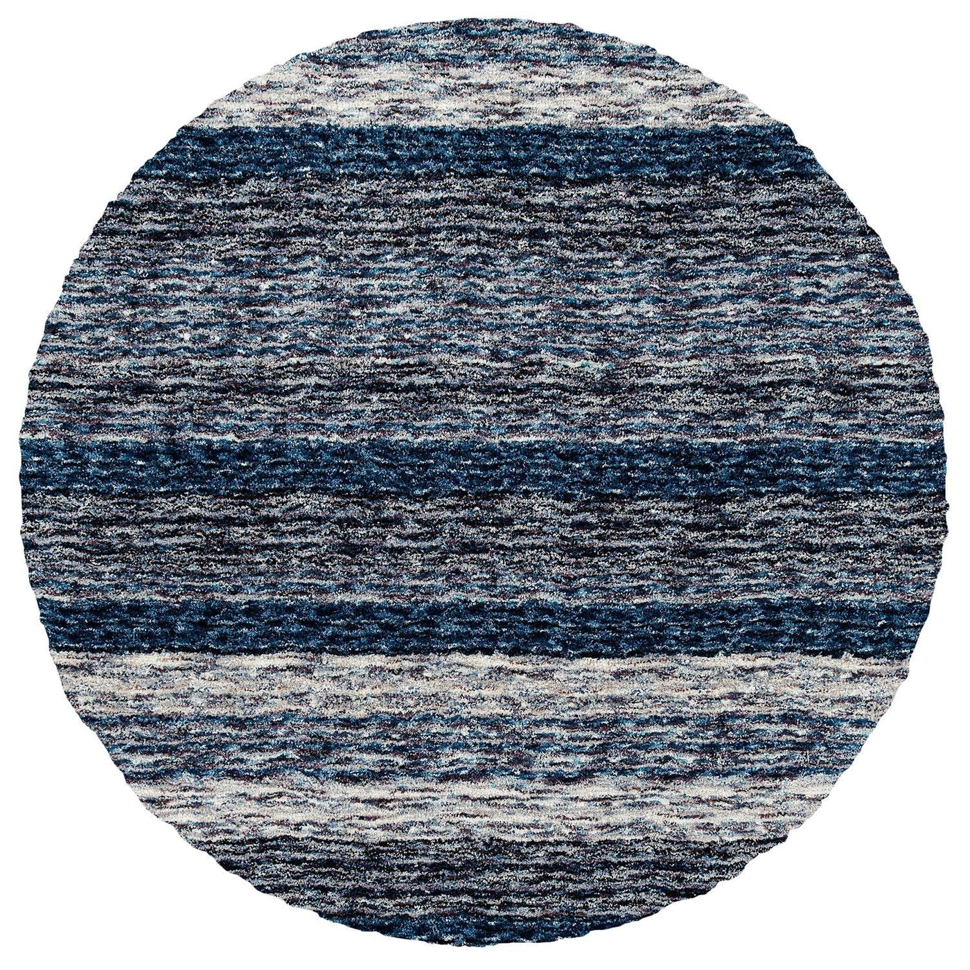 One word describes Joplin? soft The perfect combination of tonal textures for the casual lifestyle.FeaturesCut PileVarigated Yarns For Added DimensionSoothing & Silky FeelingHand FinishedDense & PlushCare Instructions: Vacuum regularly with straight suction vacuum. Never use a beater bar vacuum on a shag rug. Spot clean with mild soap and water. Never pull loose rug yarns; always trim with scissors.Package Type: RolledStyle: TransitionalConstruction: Tufted ShagFiber Content: 100% MicrofiberShape: RoundColor: Shades Of Blue, Ivory And GoldBacking Type: CanvasPile Height: 0.98Product Size: 6' x 6'Made In China