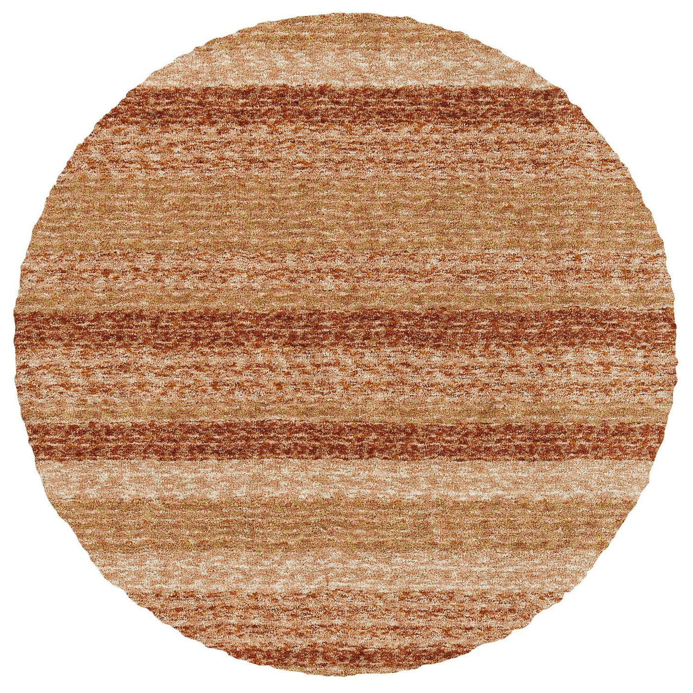 One word describes Joplin? soft The perfect combination of tonal textures for the casual lifestyle.FeaturesCut PileVarigated Yarns For Added DimensionSoothing & Silky FeelingHand FinishedDense & PlushCare Instructions: Vacuum regularly with straight suction vacuum. Never use a beater bar vacuum on a shag rug. Spot clean with mild soap and water. Never pull loose rug yarns; always trim with scissors.Package Type: RolledStyle: TransitionalConstruction: Tufted ShagFiber Content: 100% MicrofiberShape: RoundColor: Copper, Gold, Ivory, TanBacking Type: CanvasPile Height: 0.98Product Size: 8' x 8'Made In China