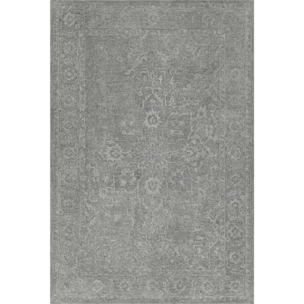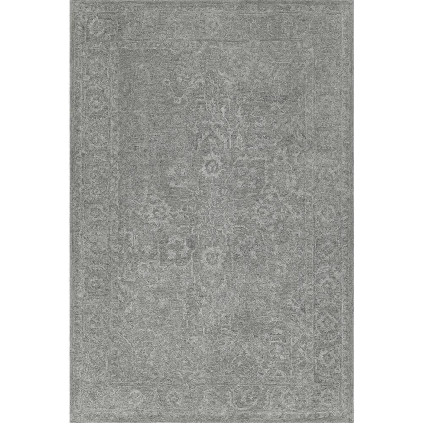 Dalyn Korba KB4 Silver 5' x 7'6" Rectangle Area Rugs. The Korba collection is an elevated take on classic styling that's anything but ordinary. Superior craftsmanship in multi-dyed, hand-tufted wool in striking, tonal shades.Feature: Colors: Silver In 6-8 Shades Of Color Material: Wool Size: 5'x7'6" Pile Height: 10mm Item Collection: Korba Shape: Rectangle Construction: Hand Tufted Style: Traditional, Distressed Backing: Cotton Design: KB4 Made in IndiaCare Instructions: Vacuum rugs regularly. Set the vacuum height gauge to its highest setting, as some powerful vacuums may damage the pile, bound edges or corners of your rug. Do not pull loose yarns; trim with scissors. It is normal for new rugs to shed fibers, especially wool rugs and hand tufted rugs. Frequent vacuuming will aid in eliminating excess loose fibers. The shedding will diminish with regular wear and vacuuming. Blot spills immediately. Professional rug dry cleaning only.