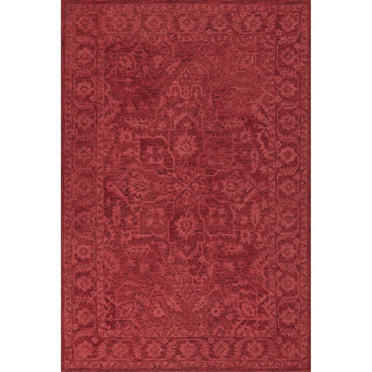 KORBA Distressed RED Heriz 5'X7'6" Wool Area Rug Superior craftsmanship in multi-dyed, hand-tufted wool in striking, tonal shades. The Korba collection is an elevated take on classic styling that is anything but ordinary. Vacuum rugs regularly. Set the vacuum height gauge to its highest setting, as some powerful vacuums may damage the pile, bound edges or corners of your rug. Do not pull loose yarns; trim with scissors. It is normal for new rugs to shed fibers, especially wool rugs and hand tufted rugs. Frequent vacuuming will aid in eliminating excess loose fibers. The shedding will diminish with regular wear and vacuuming. Blot spills immediately. Professional rug dry cleaning only.