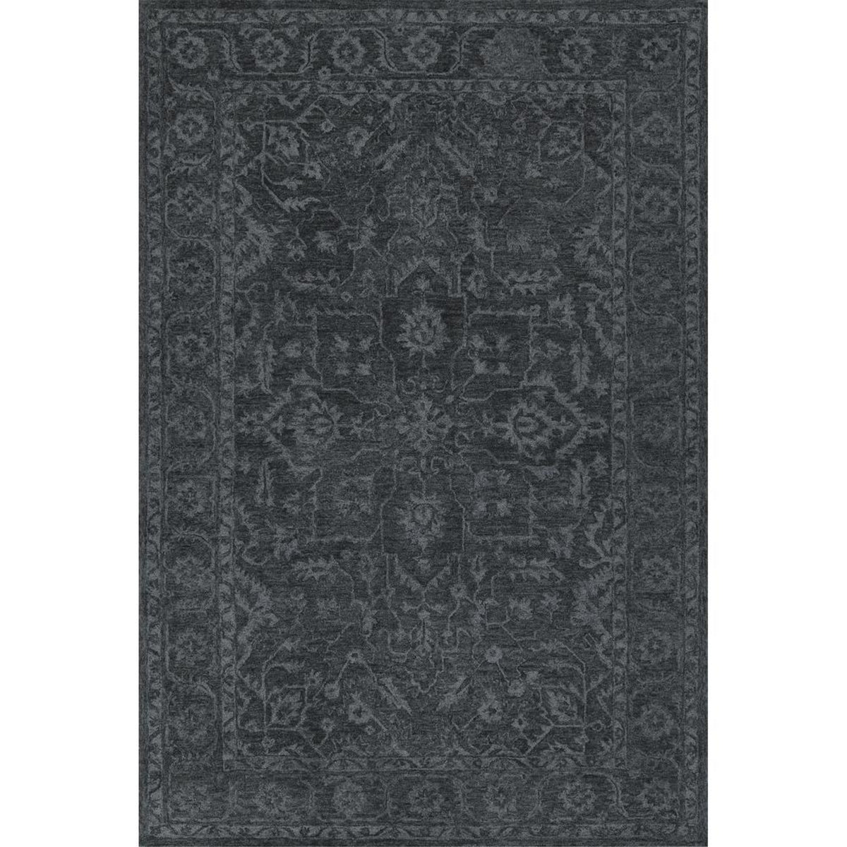 DescriptionKORBA Distressed MIDNIGHT Heriz 8'X10' Wool Area Rug Superior craftsmanship in multi-dyed, hand-tufted wool in striking, tonal shades. The Korba collection is an elevated take on classic styling that is anything but ordinary. Vacuum rugs regularly. Set the vacuum height gauge to its highest setting, as some powerful vacuums may damage the pile, bound edges or corners of your rug. Do not pull loose yarns; trim with scissors. It is normal for new rugs to shed fibers, especially wool rugs and hand tufted rugs. Frequent vacuuming will aid in eliminating excess loose fibers. The shedding will diminish with regular wear and vacuuming. Blot spills immediately. Professional rug dry cleaning only.
