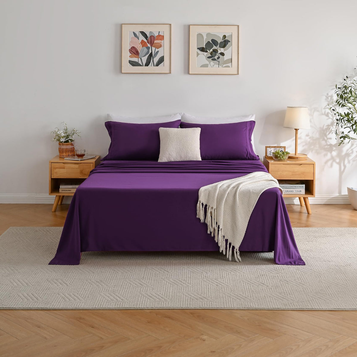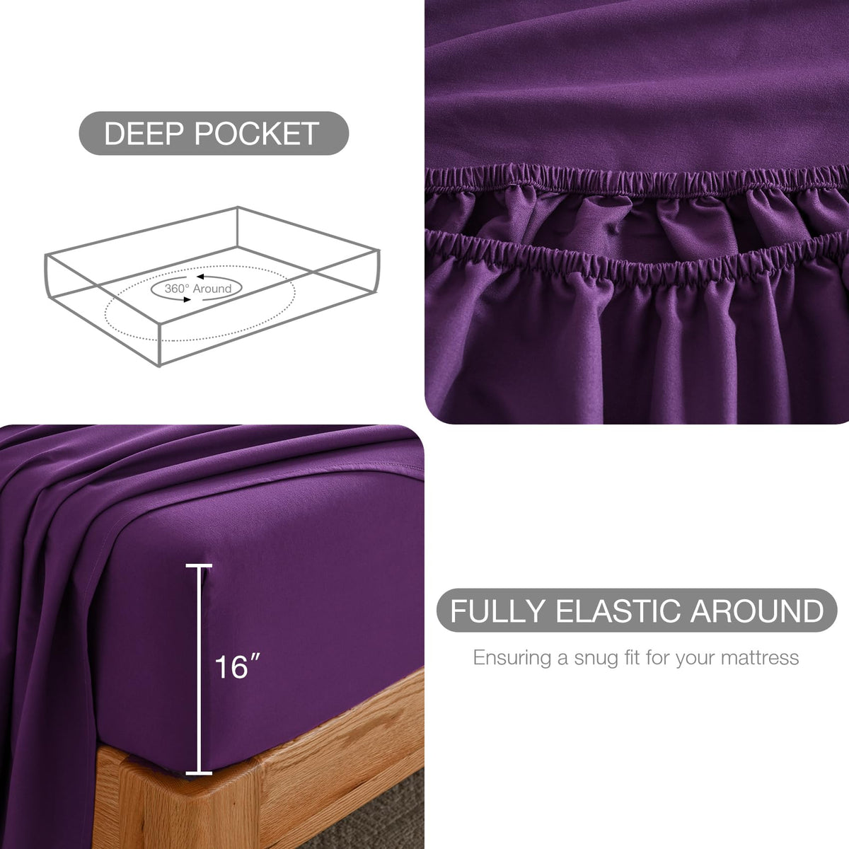 Dark Purple Twin Size Sheets Set-3 Piece Microfiber Bedsheets-Deep Pocket Fitted Sheet & Pillowcase Sets-Soft Cooling Single Bed