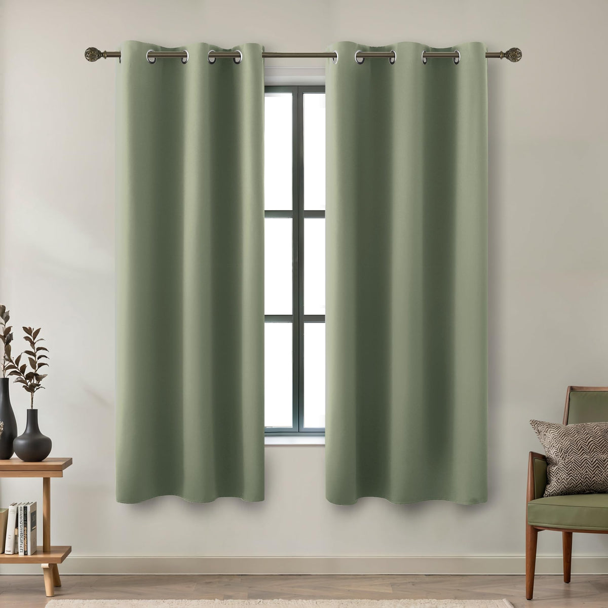 Dark Sage Green Blackout Curtains 63 Inch Length For Bedroom 2 Panels Set Grommet Room Darkening Insulated Thermal Drapes Window Treatment Curtain Panels For Living Room Boho Decor,42X63 In Long