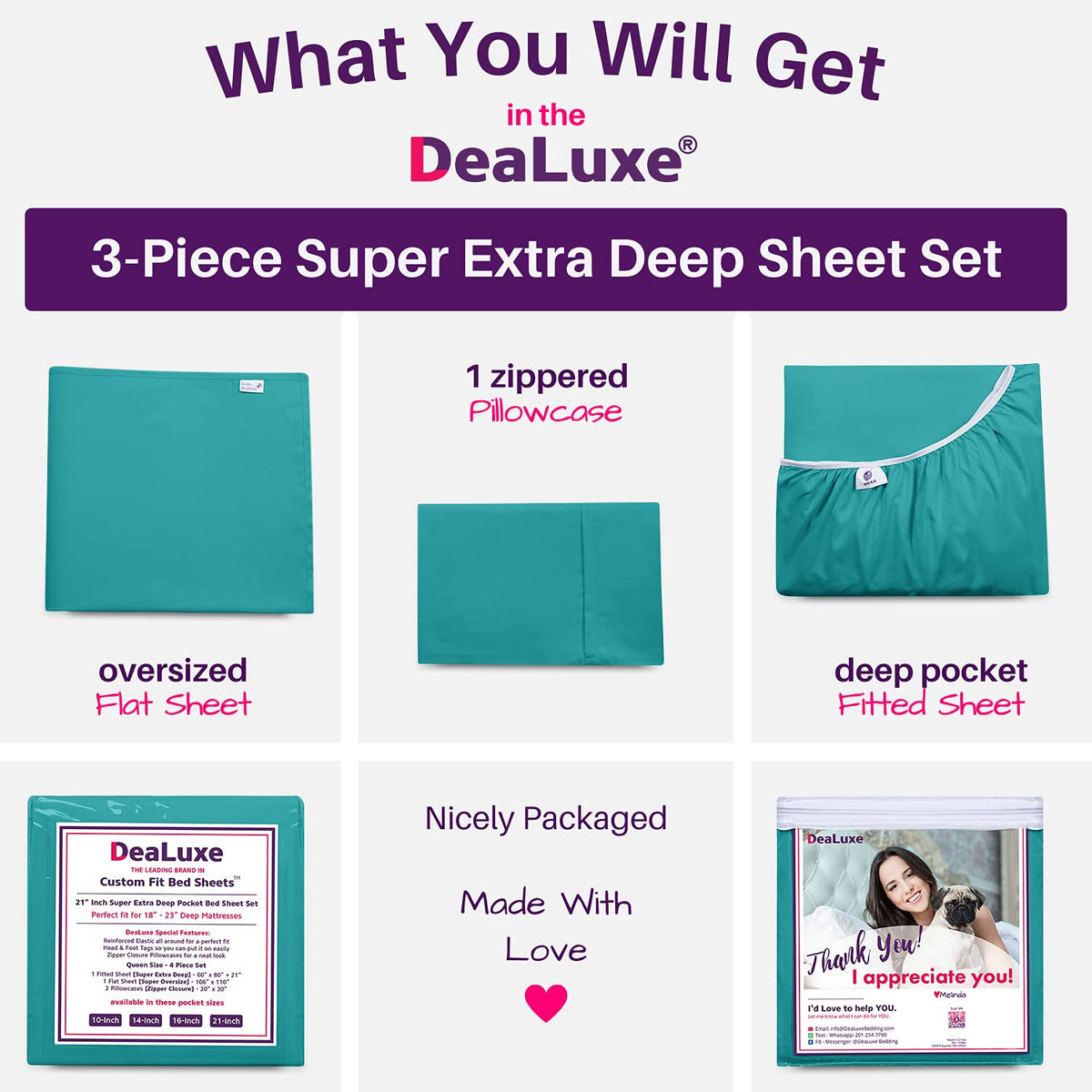 Q: How do I care for the DeaLuxe 21" Sheet Set?A: The DeaLuxe 21" Sheet Set is machine washable and easy to care for. Simply tumble dry on low and remove promptly to avoid wrinkles. The sheets are also stain and fade resistant, ensuring they maintain their vibrant teal color with minimal effort.