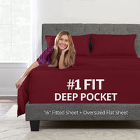 Queen Sheets Set Bed Sheets - Queen Bed Sheets Set Sheets For Queen Size Bed Bedding Sheets & Pillowcases 16 Deep Pockets Fitted Sheet - Oversize Flat Sheet - 2 Zipper Closure Pillowcases - Burgundy