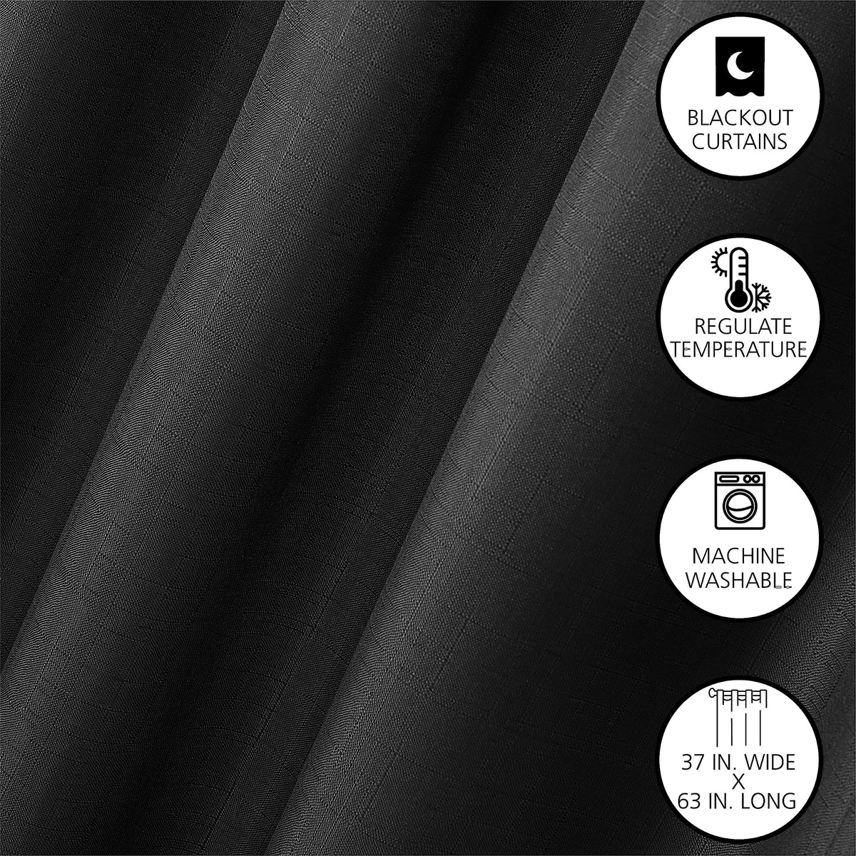 Dearfoams Energy Efficient Total Blackout Curtain Window Panel Set Of 2, 37'' X 63'' Black