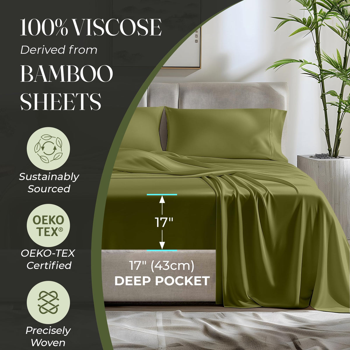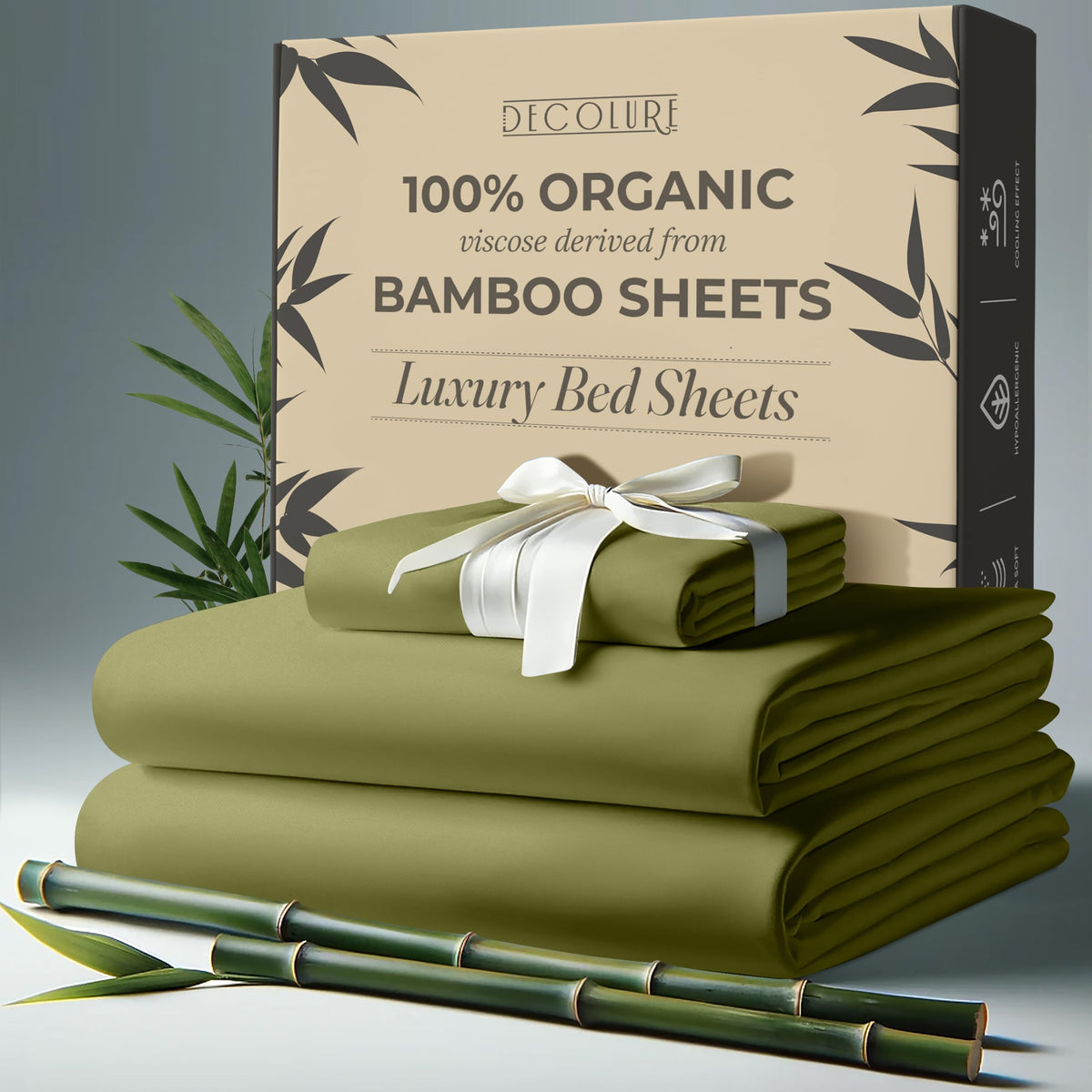 Decolure 100% Organic Viscose Derived From Bamboo Sheets Twin Size 3Pcs - Ultra Soft & Luxuriously Cooling, 17'' Deep Pocket, Do
