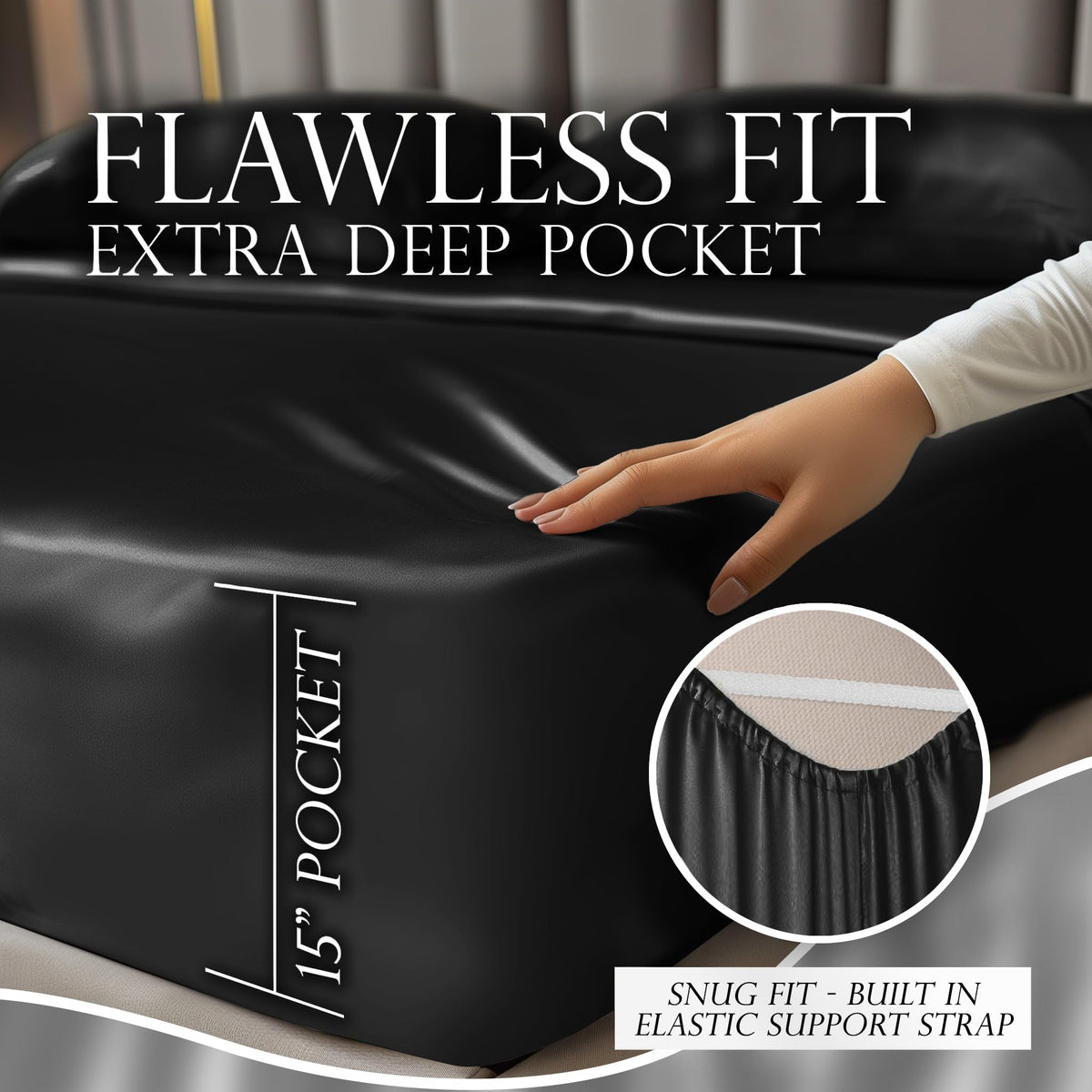 Decolure Satin Sheet Queen Set 6Pcs - Comfy Hotel Luxury Silk Feel Satin Sheets Queen - Elegant Silky Soft Queen Size Satin Bed