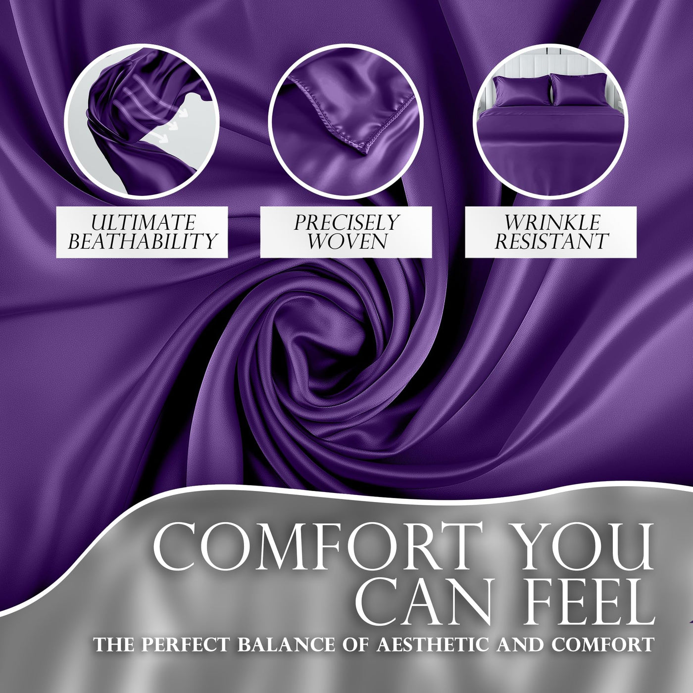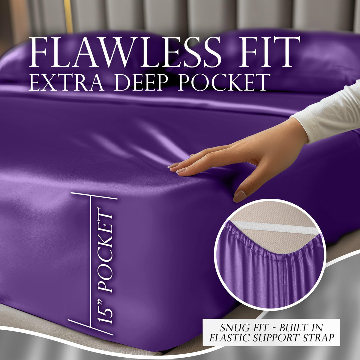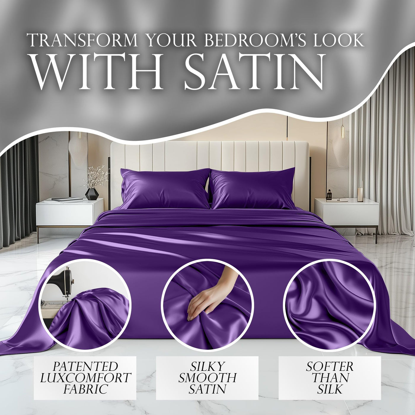 Decolure Satin Sheets King Set 6Pcs - Genuine And Luxurious Silk Touch Satin Sheets King W/Deep Pocket - Elegant All-Season Silk