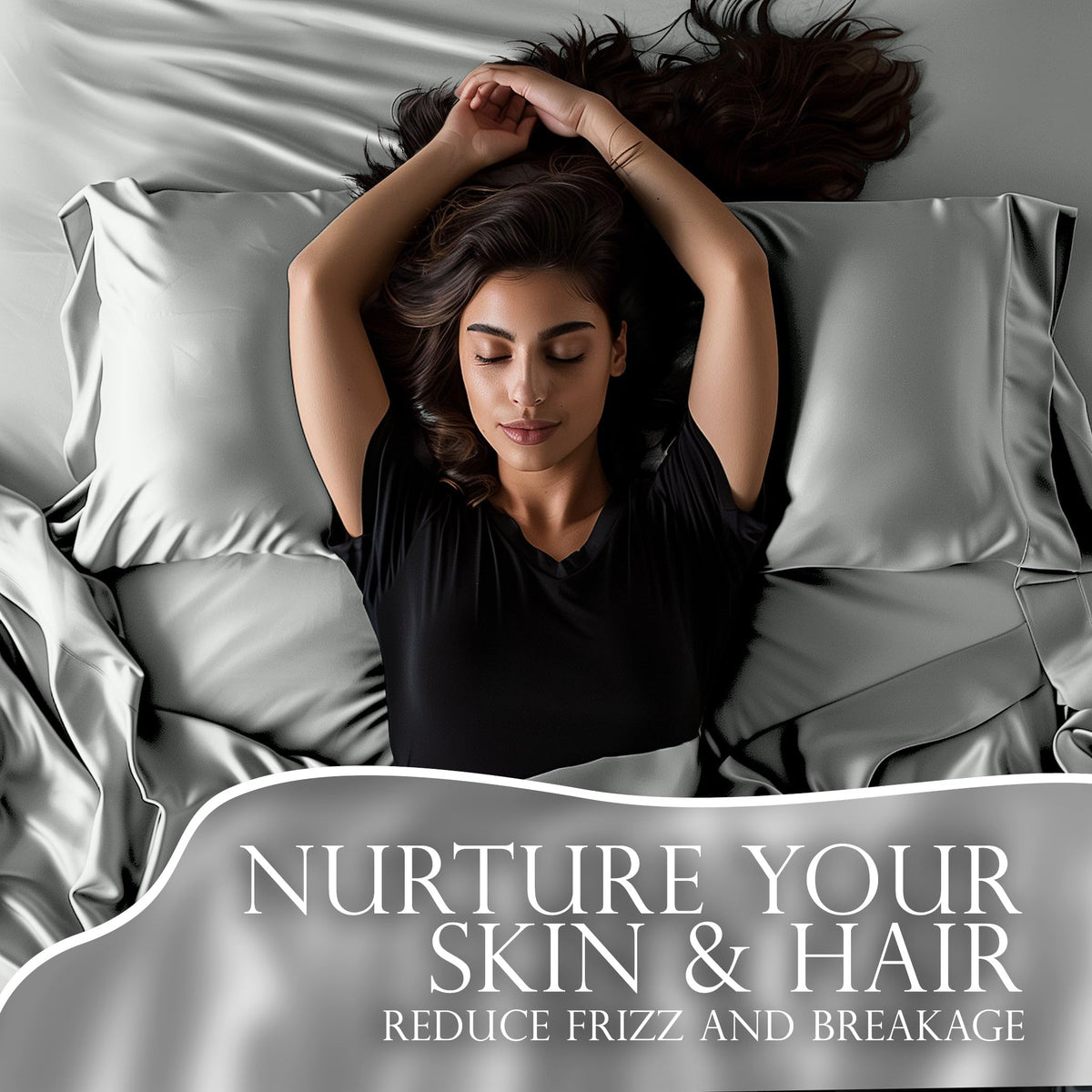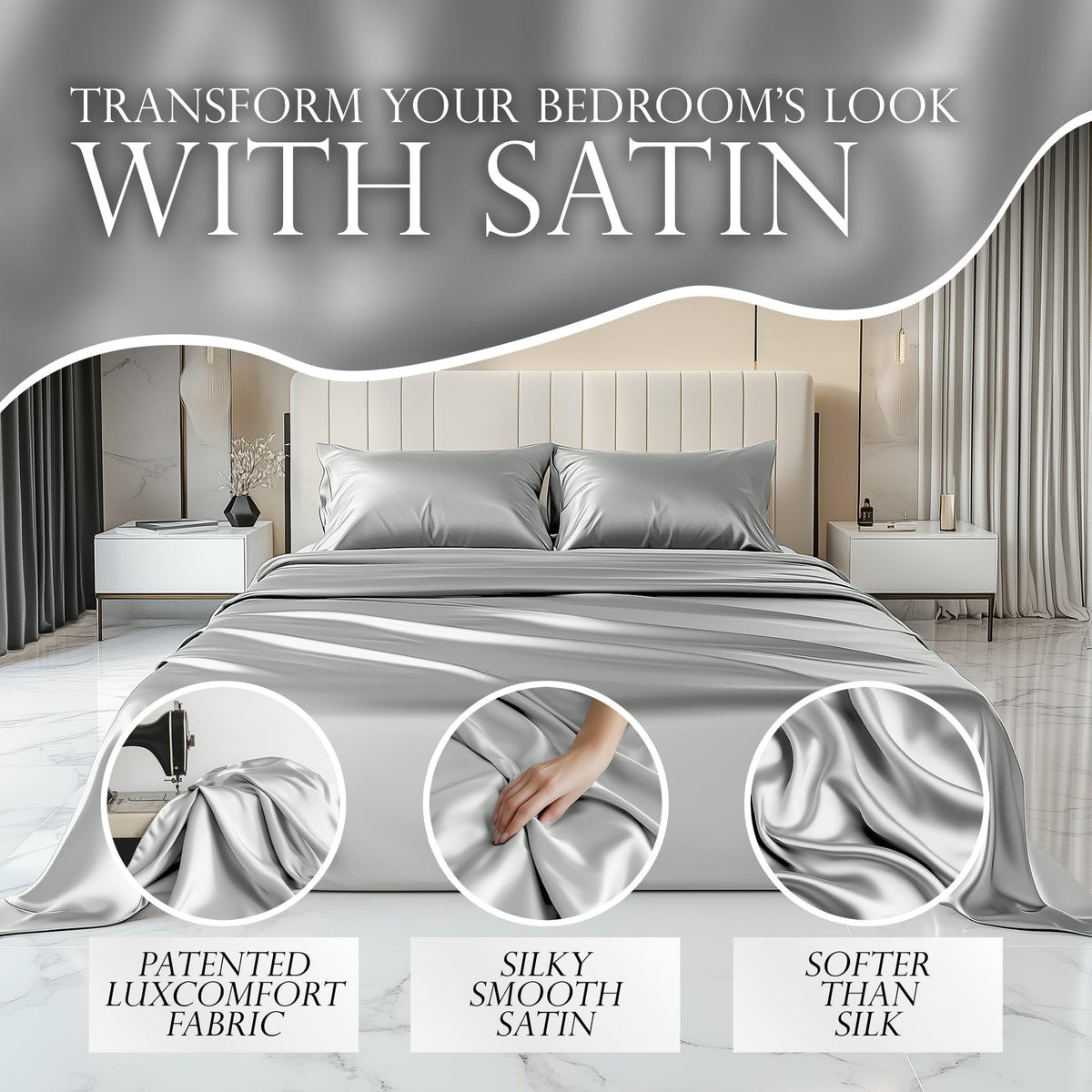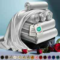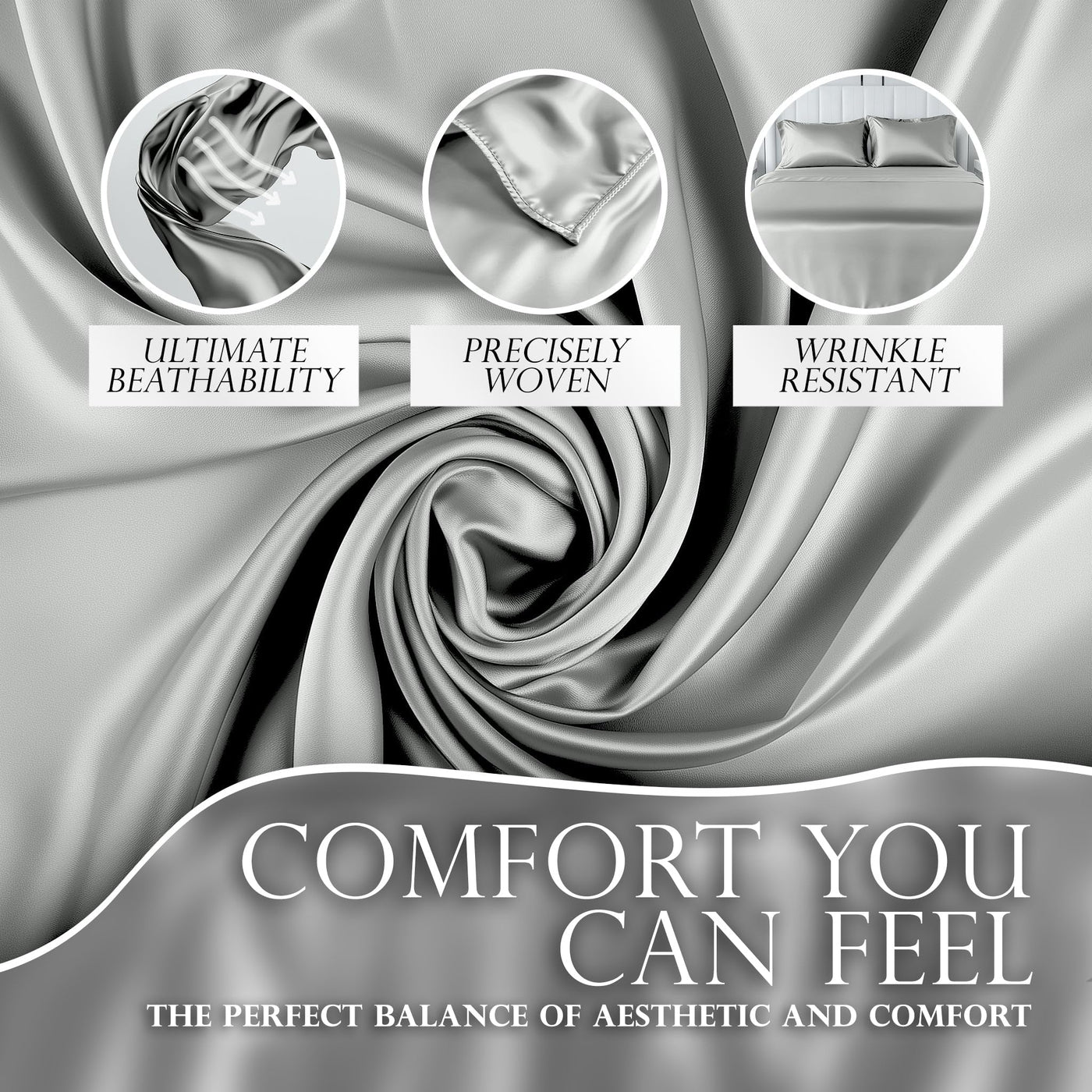 Decolure Satin Sheets Queen Set 6Pcs - Genuine And Luxurious Silk Touch Satin Sheets Queen W/Deep Pocket - Elegant All-Season Si