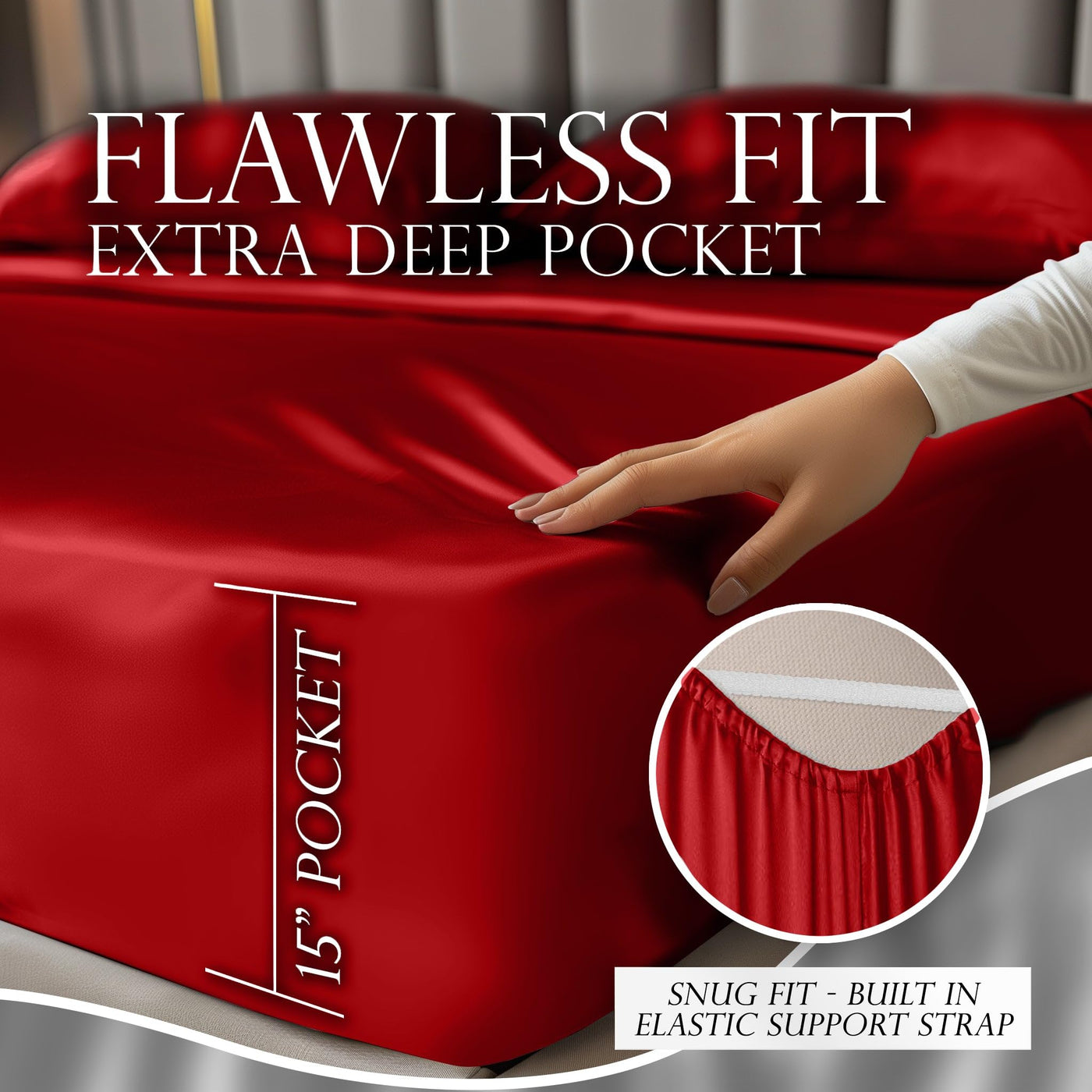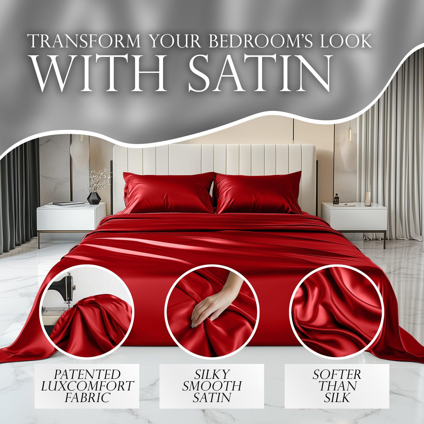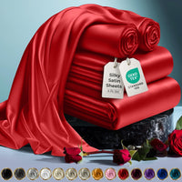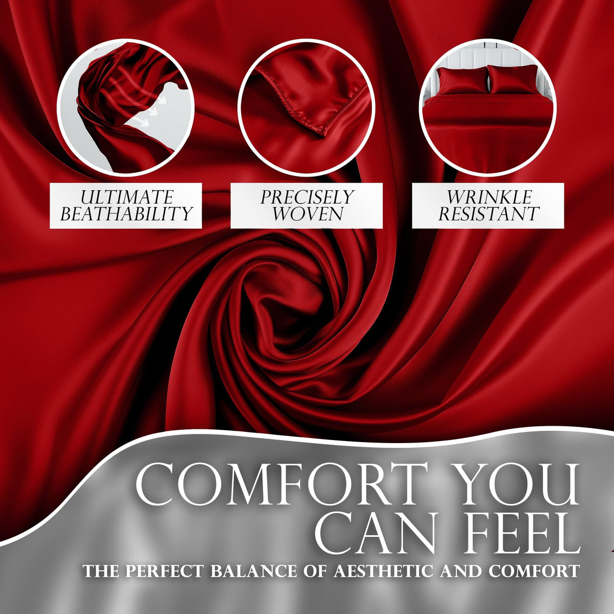Decolure Satin Sheets Twin Set 4 Pcs - Hotel Luxury Silk Touch Satin Sheets Twin - Elegant Silky Soft Twin Size Bed Sheets