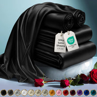 Decolure Satin Sheets Twin Set 4Pcs - Comfy Hotel Luxury Silk Feel Satin Bed Sheets Twin- Elegant Silky Soft Twin Size Satin Bed